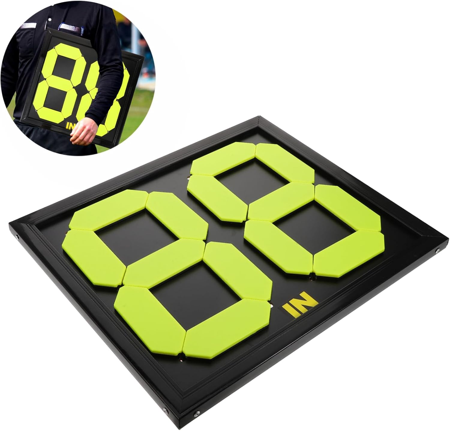 Package List 1 x football substitution board Characteristics -Size:43.00X37.50X2.00cm/16.90X14.74X0.79in foosball table accessories -Conveniently portable: its compact and lightweight design makes it easy to carry and store, providing convenience football score keeper - durability: constructed from PP materials, this substitution board is built to endure extensive use foosball men replacement -Streamlined substitution: the manual design makes that player changes are completed quickly and easily during the game football referee yard marker -Versatile for multiple sports: while ideal for football, it can also be used in other team sports like basketball and volleyball soccer substitution board -Material:PP foosball replacement parts -visible: the feature clear fonts and bright colors, making them easy to recognize by referees and players soccer markers -Color:Black football referee accessoriesGoods Informationfoosball replacement players This board helps referees manage substitutions efficiently, the smooth operation of football matches.football training equipment The bright fluorescent numbers make visibility, while the sturdy construction long-term use.referee scoreboards This football substitution board combines functionality with durability, making it an indispensable tool for referees