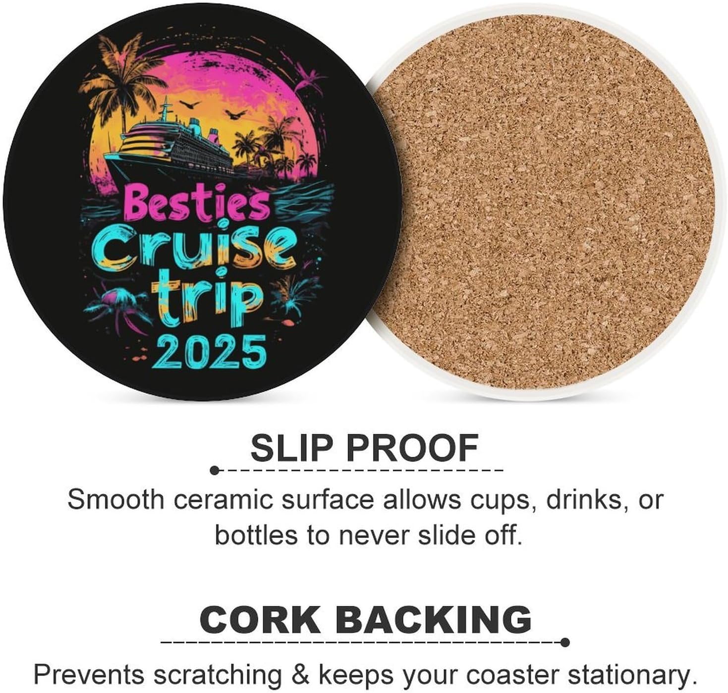 coasters,coasters set of 4,coasters set of 6,cute coasters with Funny Pattern Printed Ceramic Coasters with Cork Base Cup Holder Absorbent for Drinks Coasters Round Tabletop Protection Mat Decorative Cute Coffee Cup Beverage Coasters