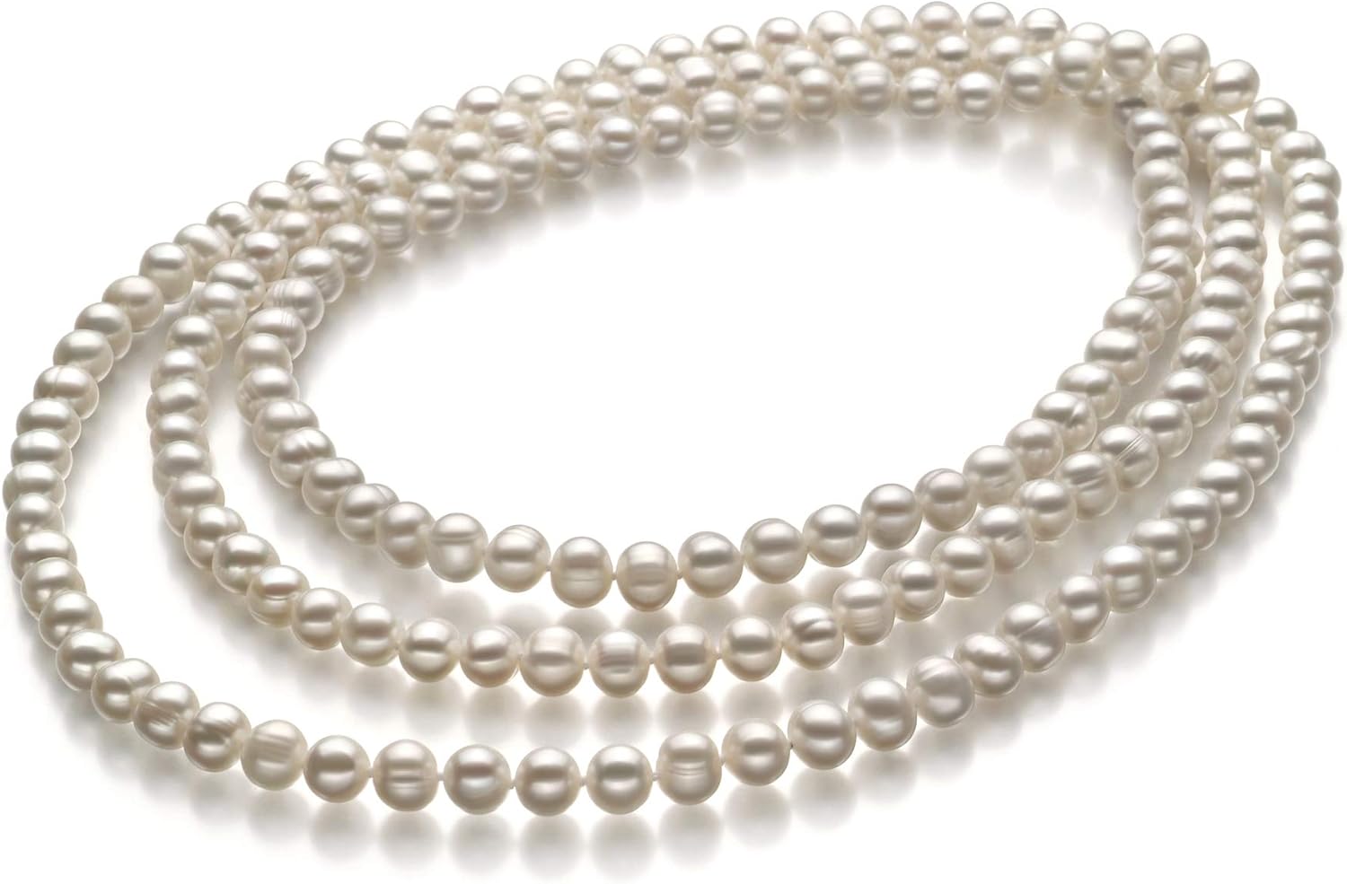 A timeless classic: this 51” small and perfect White Pearl necklace shows pearls remains a valued treasure. The unique and varied (A) circular patterned shaped pearls make this necklace as special as you are, there are no two alike. The characteristics of the pearls resemble drops, oblongs, rings, ridges and more. The (AA) luster brings out the surfaces natural beauty and shine as it layers on your neckline or drops down the front of your attire.