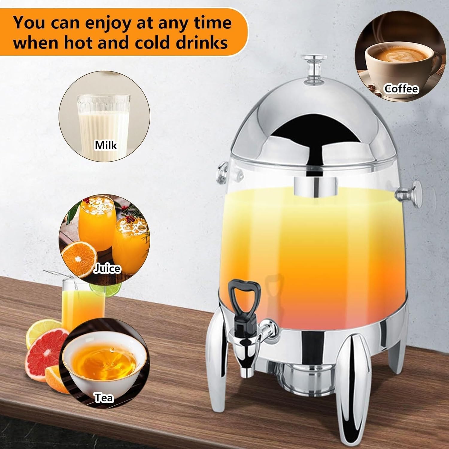 Product Name: Drink Dispenser, Water Dispenser, Beer TowerMaterial: Stainless SteelProduct Capacity: 12LThis beverage dispenser is made of high-quality stainless steel and PC material, making it durable, heat-resistant, and not easily deformed.Our dispenser comes with a fuel rack. To keep drinks warm, simply ignite the alcohol fuel to maintain their temperature at a party.Our beverage dispenser allows you to add ice cubes into the stainless steel tube to keep your drinks ice-cold, allowing you to enjoy chilled juices.This dispenser features a stainless steel faucet. Drinks flow vertically, preventing splashing and leaks, making it easy to use.1. Our dimensions are measured manually and may have slight errors. Please understand.2. Due to differences in photography equipment and conditions, there may be color variations. Please refer to the actual product for the most accurate representation.
