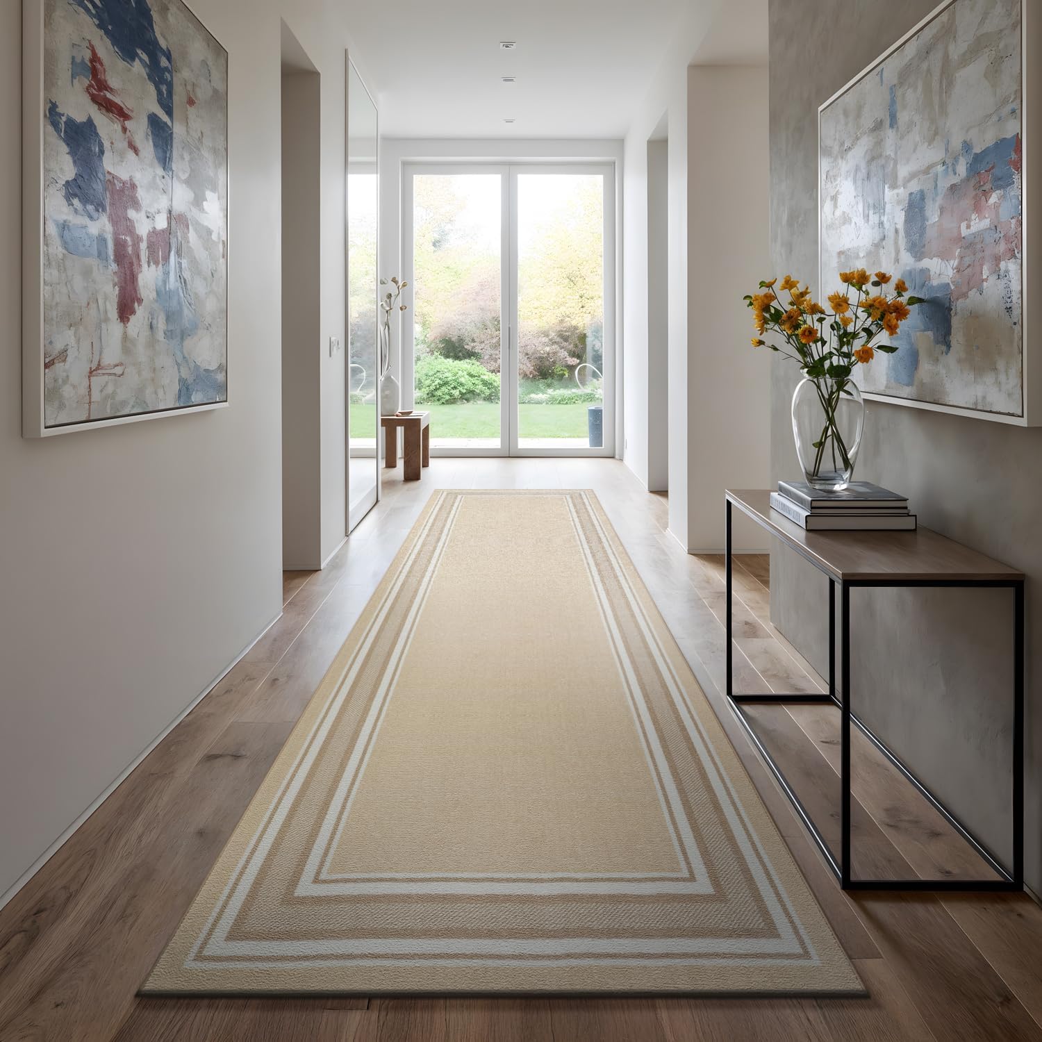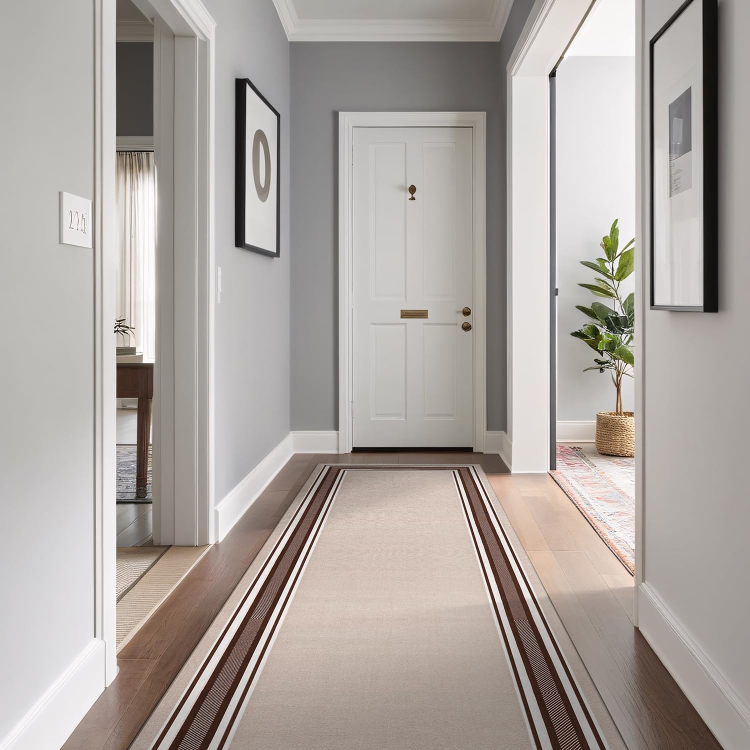 Beverly Rug Non Slip Area Rugs collection offers an elegant and stylish look to your indoor areas with its bordered patterns in beige, black, blue, beige/brown, brown, gray, and navy that beautifully complements your interior decor. These rugs are suitable for a variety of spaces, including dining rooms, living rooms, kitchens, bedrooms, guest lounges, children's rooms, and offices. Our non-slip area rugs are available in different sizes, such as 2X3 Small Entryway Rug (2' x 3'), 2X5 Runner Rug (2' x 5'), 2X7 Runner Rug (2' x 7'), 3X3 Area Rug (3' x 3'), 3X5 Area Rug (3' x 5'), 5X7 Area Rug (5' x 7'), and 8X10 Area Rug (8' x 10'). These rugs feature non-slip rubber backing and are made of 100% first-class soft polyester fibers, ensuring both comfort and durability. Additionally, they are non-shedding, maintaining their appearance over time and adding elegance to your decor.