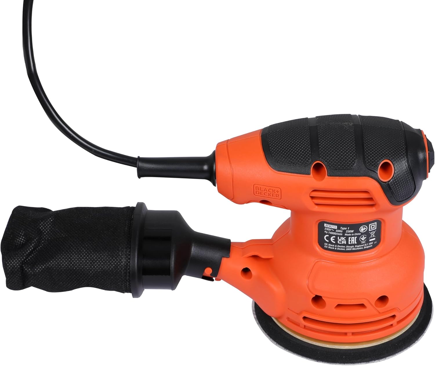 A random orbital sander is the ideal tool for sanding and polishing on wood, metal, PVC, and paint removal on both flat and curved surfaces. The powerful 230W motor provides fast material removal, whilst the random orbital sanding action allows you to sand safely across the wood grain without leaving swirl marks. Keep your workspace clear with the handy dust bag.