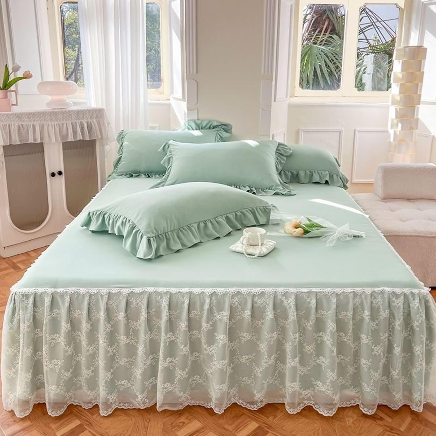 Including Bed Skirt x 1pcs; Bed Skirt Size: 150x200cmFarbic: PolyesterOur bed sheets feature elastic for the corners to hug your mattress securely! They fits standard size mattress.Our bed sheets are soft, breathability, durability and lasting quality.Our bed sheets are conveniently machine washable. However, to keep wrinkles at bay, promptly remove the sheets from the dryer or iron them.