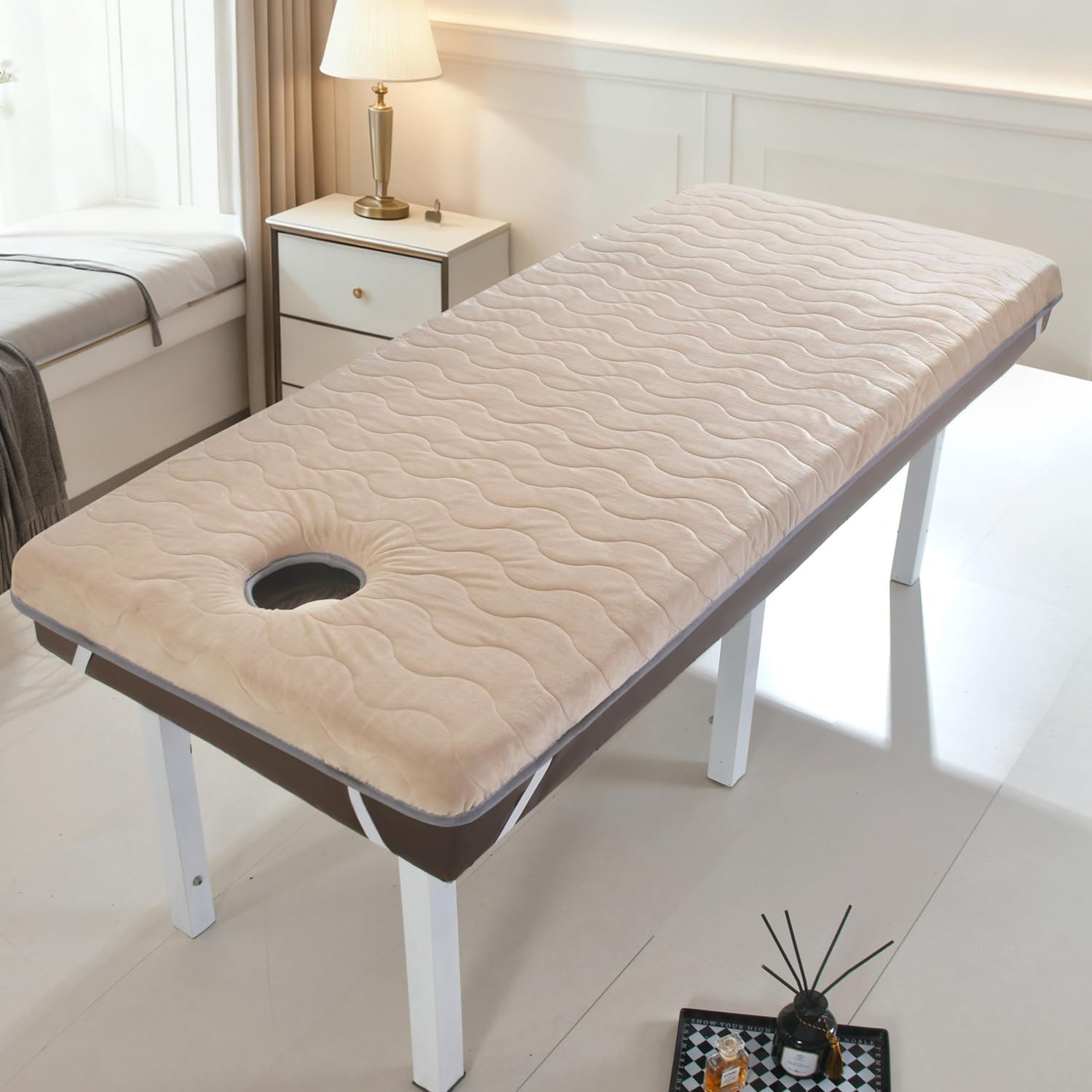 We attach great importance to the quality requirements of each customerThis beauty mattress is not easy to collapse or deformNot only can it support the body evenlyAnd it’s very comfortable and soft to lie onVery suitable for use in beauty salons, salons, massage parlorsFabric: Type A is knitted cotton fabricType B is velvet fabricFilling: latex+memory foamThickness: 4cm(1.6in)With or without facial breathing holes: with holeMassage mattress shape: (S)Square Head, (R)Round Head, (T)Trapezoidal HeadSeason of use: all seasonsUse places: beauty salon, health center, chiropractic, spa sauna, physiotherapy massage parlor, etcColor:A/white,A/gray,B/grey,B/khakiSize:180*60cm(71*24in)185*70cm(73*28in)190*70cm(75*28in)190*80cm(75*31in)Packaging Details: 1 x Latex Memory Foam Mattress Topper for Massage Table (Excluding Display Bed)Kind Tips:1.This model is a soft mattress, and there will be an error of 1~3cm after being compressed and packed, which will not affect your later use (please be careful if you mind)2.The product photos are all taken in kind, which may be due to the light and different monitors when the pictures were taken. The problem of color difference caused by the display deviation and personal color understanding is unavoidable (such problems are not quality problems )3.Not removable and washable, needs to be spread with sheets! ! !