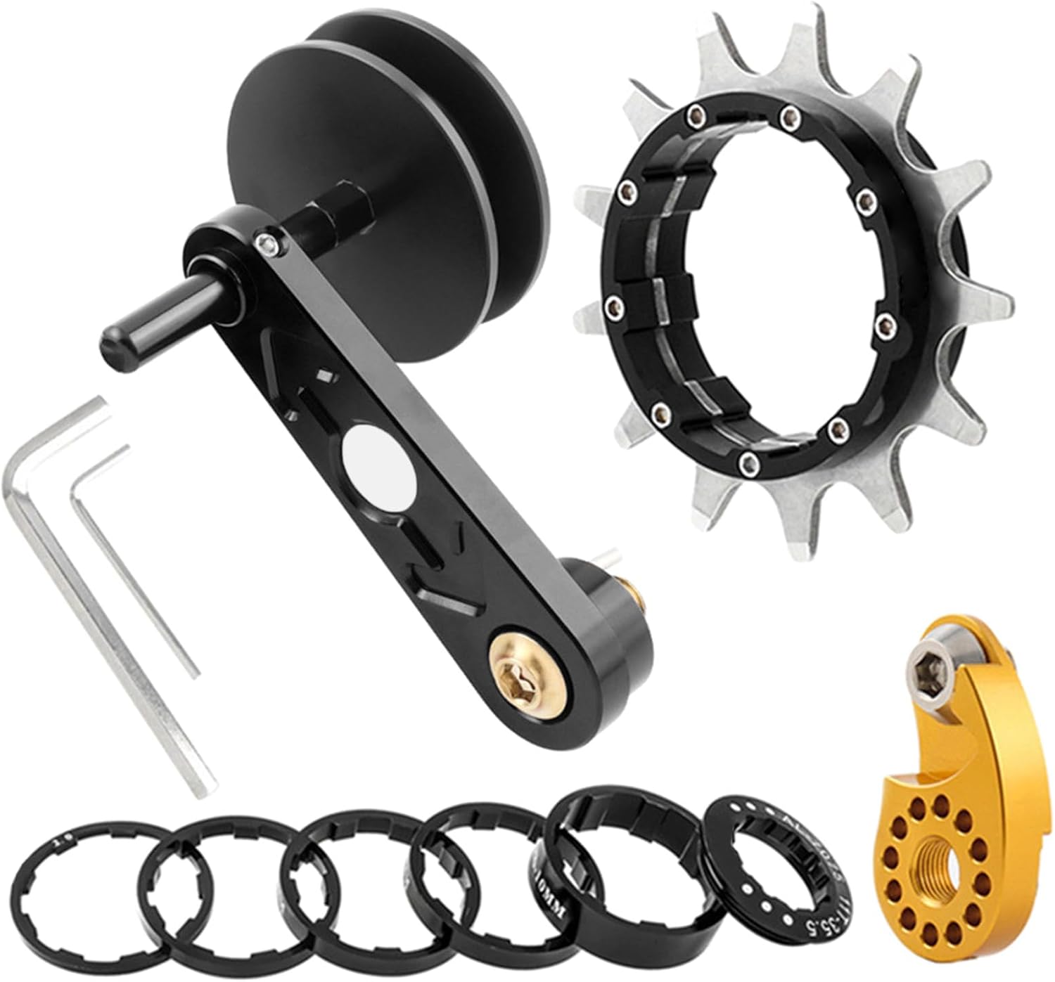 Bicycles Single Speed Adjuster Converter Single Speed Chain Tensioner Cassettes Cogs Bike Chain Tensioner Features This Bicycles single speed chain tensioner effectively prevents chain derailments, maintaining stable tension.Make from Aluminum Alloys and steels, with durability and high strength, ensuring long terms performances.This chain tensioner provide a simple, effective and adjustable way to ensures chain tension.Our bike chain Tensioner is designs for quick and easy setups, requiring only a few step to install.Ensures a smooth, quiet Cycling, allowing you to enjoy the sounds of natures without noise chain.Specifications:Materials: Aluminum Alloys and steelsNumber of teeth: 12T/13T/14T/15T/16T/17T/18T/19T/20T/21T/22TSize: as shown in the picturePackage Includes:5PCS Spacer1pc Flywheels Covers1pc Flywheels1pc Chain Tensioner2PCS Wrenches1pc Torsions AdjusterNote:Please allow 1-2cm errors due to manual measurement, make surely that you not mind before order. Due to difference between different monitors, the picture may not reflect the actual color.