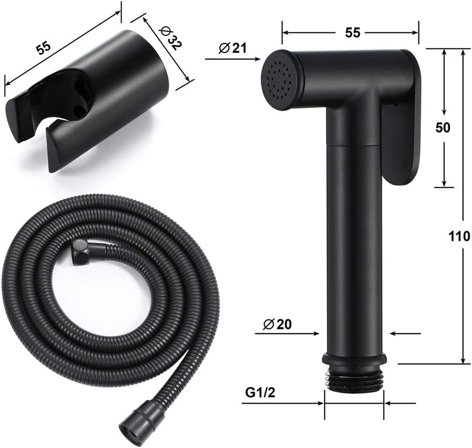 Spary Type: Horizontal Tap hole: Single Hole Faucet Tapping: Single Hole Installation Type: Wall Mounted Product: Hand held Sprayer Number: Hand-held Type: Bidet Sprayer Surface Treatment: Black / Chrome / Gold Bidet Faucet Material: Brass Type A Material: Brass Base / Stainless Steel Shower Hose Type A Color: Chrome Type B Material: Stainless Steel Base / Stainless Steel Shower Hose Type B Color: Black Type C Material: ABS Base / Stainless Steel Shower Hose Type C Color: Gold Shower Hose Size: 1.5m Thread: G1/2 Inch
