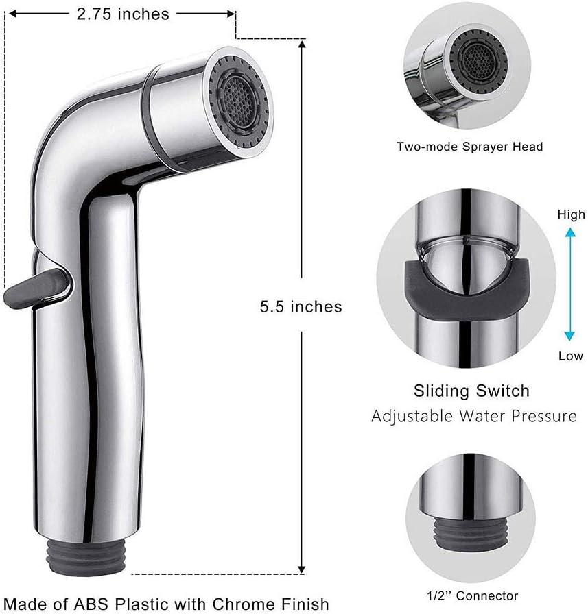 SprayersThe perfect solution for everyday personal hygiene contributes to a healthy and happy lifestyle.Specification:Product Name: Bidet faucetStyle: ContemporaryColor: ChromeInstallation Type: Wall mountedHot & Cold Water NoHandheld Sprayer 2 functions handheld bidet sprayerShower Hose: 1.5mConnection Size: G1/2Material:Hand Sprayer Material: ABSShower Hose: Stainless Steel●Package Included: Complete with faucet & accessoriesApplicable PlacesVilla Bathroom Private Club Bathroom, Hotel Bathroom, Club Bathroom, Family Bathroom and so onInstallation Tips:Rinse the debris in the pre-embedded water pipe before installation to avoid clogging the faucet and internal pipingWarm Tips: Since the size is measured manually, there is a certain error. Please refer to the actual product. Please understand and thank you very much. Monitors are not calibrated same, item color displayed in photos may be showing slightly different from the real object. Please take the real one as standard.We hope you enjoy life!