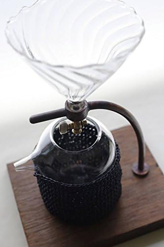 Welcome to a new era of coffee brewing with the Biduhaev "Greeting Coffee Stand," a fusion of elegance, craftsmanship, and unparalleled functionality designed for the discerning coffee lover. This unique coffee dripper/maker, ideal for both hot and cold brews, stands out with its handcrafted Akagane copper, resilient ironwood, and bespoke glass elements, all coming together in a 450ml capacity design that promises a coffee experience like no other.Exquisite Craftsmanship and Style:Handmade Perfection: Each bowl is a testament to individual craftsmanship, ensuring every piece carries its own distinctive presentation and charm. The bottom glass cup is adorned with a woven wrap, enhancing its aesthetic appeal and providing a tactile experience that complements its visual style.Streamlined Brewing: Simplified for efficiency, the dripper includes no extra parts, allowing the upper filter system to facilitate a smoother coffee flow. This thoughtful design ensures a clear, refined taste with each brew.Adjustable Drip Valve: Tailor your brewing experience with the precision valve located below the filter, enabling fine adjustments to the drip rate. This control allows for perfect steeping times, delivering coffee strength tailored to your personal preference.Generous Capacity: Designed to serve you and a companion, the bottom beaker's 450ml capacity ensures there's plenty to go around, making it as suitable for quiet mornings as for sharing moments with a friend.Unique and Durable Materials: Featuring Akagane copper known for its elegant simplicity and a wooden base that's not mass-produced, ensuring variations in wood type and color for a truly one-of-a-kind piece.Product Dimensions:Stand: 8.25 x 6.75 x 12.5 inches, including glassy filtersGlassy Filters: 4 x 5 inchesBottom Beaker: 4 x 4.75 inchesThe Biduhaev "Greeting Coffee Stand" is more than just a coffee maker; it's a centerpiece that brings both form and function to your daily ritual. Whether you're a connoisseur of fine coffee, a lover of unique home goods, or seeking the perfect gift for the coffee enthusiast in your life, this Coffee Dripper/Maker stands ready to transform how you experience your favorite brew. Embrace the blend of tradition and innovation, and let the "Greeting Coffee Stand" elevate your coffee moments to an art form.