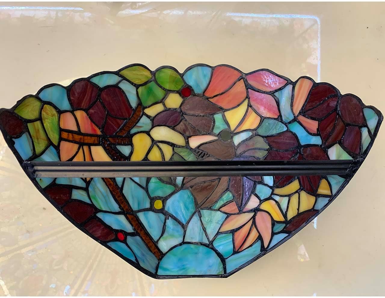 Elevate your home decor with our Tiffany-style stained glass maple leaves wall sconces, a striking fusion of artistry and functionality. With a generous 12-inch wide lampshade adorned with rich red, golden yellow, and fiery orange leaves, these sconces bring the beauty of autumn indoors, casting a warm and inviting glow.