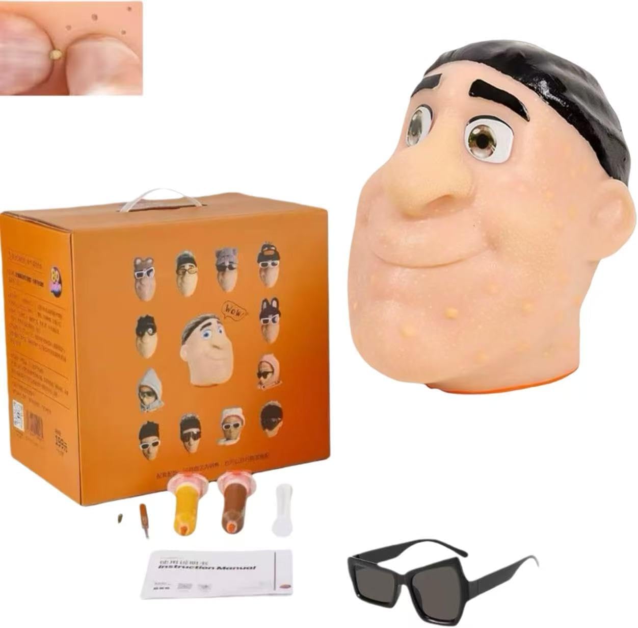 Rediscover the Oddly Satisfying Joy of Squeezing! Are you a "pimple popper" enthusiast? Do you find yourself mindlessly picking at your skin when stressed? Our Refillable Big Head Pimple Toy is here to save your skin and your sanity. Designed to mimic the exact tactile sensation of popping a real zit, this toy offers a safe, hygienic, and endlessly repeatable way to relieve tension. Product Specifications:Material: Skin-safe Medical Grade SiliconeFeatures: Refillable Pores, Pluckable Golden Hair, Realistic TexturePackage Includes: 1 x Big Head Squeeze Toy, 2 x Refill Pus Gel, 1 x ToolWhy Choose Our Pimple Toy Over Competitors? Most toys only offer one sensation. Ours offers: the Squeeze (pus), the the Pull (blackheads). It is specifically engineered for those with Trichotillomania or Dermatillomania (skin picking disorder) as a therapeutic distraction. Frequently Asked Questions:Q: Is the "pus" safe? A: Yes, the refillable gel is made from natural, non-toxic ingredients. It is easy to wash off hands and surfaces.
