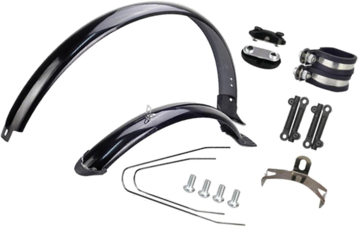 Description: - 【Premium Material】: Bike Front Rear Fenders are made from pp material, with great durability, which effectively resists splashes of mud and sand from the road. - 【Easy Installation】: Bike Mudguards allow for quick installation and removal, making it convenient to carry and store without taking up too much space. - 【Spill Resistant Design】: Bicycle Mud Guard effectively prevents road splashes such as cement and mud from contaminating your clothes or bicycle, keeping you clean while riding. - 【Stylish & Practical】: Not only do mountain Bicycle Mudguards stylishly simple design serve a spill resistant function but also enhance the overall aesthetics of your bicycle. - 【Wide Applications】: Road Bicycle mudguard replacement Accessories are widely suitable for mountain bikes, road bikes, street bikes, etc.Specification: - Material: PpSize Chart:Suitable tire size: 29X2.2 29X2.125 29X1.95 29X1.75 29X1.5Front Fender: 71cmx6cm/27.95inchx2.36inchFront Fender: 110cmx6cm/43.31inchx2.36inchPackage Includes:1 Pair of Front and rear fenders3 sets of screws2 fender and bracket sticks4 adjustable bracket lengths1 Linking clip1x L shaped hook2 sets of bracket sticksNote:Please allow slightly errors due to manual measurement and different monitors.