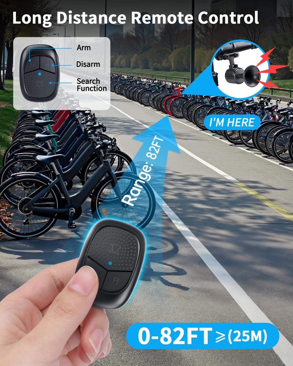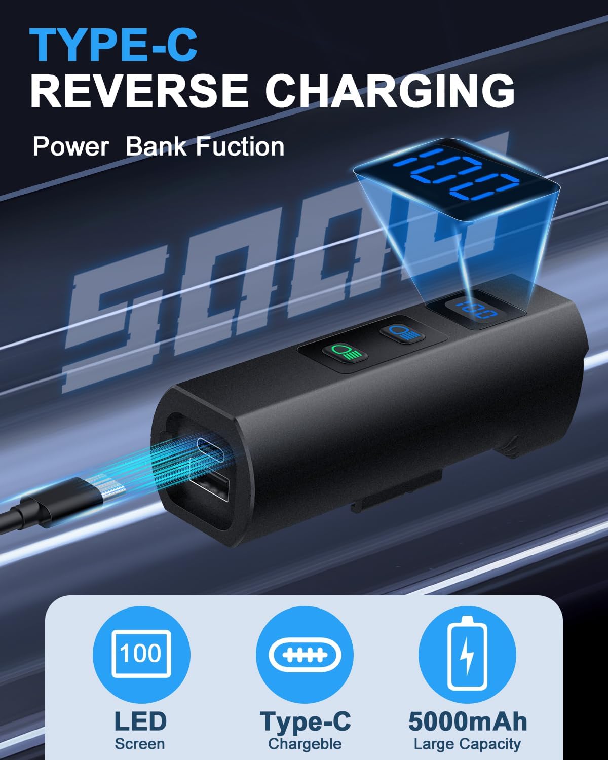 Get 1200-lumen LED bike light with 360° rotation, 5+5+3 modes, and real-time power display—plus a 120dB wireless remote horn with anti-theft alert. Both are USB-C rechargeable (5000mAh light battery), IPX5 waterproof, and fit bikes, e-bikes, scooters. Mounts easily on 22-35mm handlebars. Ride brighter, louder, and safer!