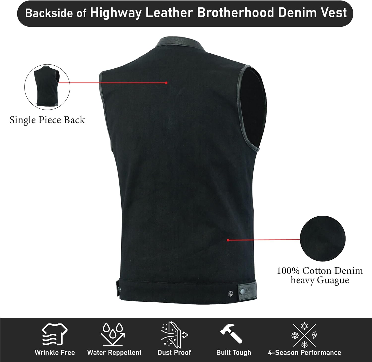 Our Brotherhood Denim Motorcycle Vest is a high-quality vest with a great fit. Inspired by classic biker vests, it offers a cool and stylish look. It features two spacious interior pockets for carrying small personal items.
