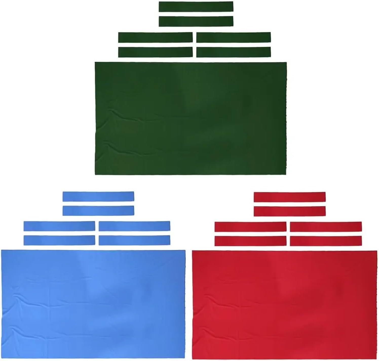 Description:Provide cloth stretching capability and for fast speed ball.Can be cut for exact usage, durable in use.Provide better playability, for better sports game performance.Great for holding up in a variety of environments, used to bars, clubs, hotels and more.Specification:Material: Wool + NylonBed Cloth Size: Approx. 2.8 x 1.53m/ 9 x 5ftCushion Cloth Strip: Approx.1.32 x 0.16m/ 4.3 x 0.5ftThickness: 0.6mmColor: Blue, Green, Red (Optional)Package Includes:1 Piece Billiard Table Cloth6 Pieces Cushion Rail StripsNote:Please allow slightly difference due to manual measurement. Color may be slightly different since different monitor. Thanks!
