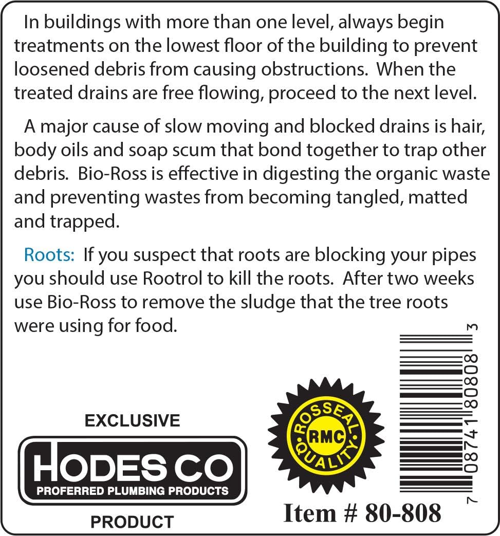 Bio-Ross Enzyme Treatment is the safe and economical alternative to conventional plumbing treatments including chemicals and acids that are potentially dangerous to workers, corrosive to you system and hazardous to the environment. This non-toxic and environmentally safe product uses a synergized blend of eight bacterial strains to digest and liquefy organic waste that cause blocked drains, plumbing problems and odors. All waste that you put down your drains is biodegradable. One can of Bio-Ross contains over 900 billion organisms. This formulation far surpasses competitive products in bacterial count and types of strains that generate the enzymes needed to effectively digest sludge, scum, grease and all other organic solids. Use on Garbage Disposals, Drain Systems, Grease Traps, Holding Tanks, Industrial/Municipal Collection Systems, Ponds, Lagoons, Septic Systems. Over 100 treatments for your drains per can. This one container will treat a 1000 gallon septic tank system.