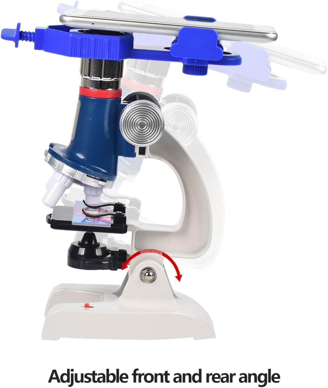 product description specification Name: Children's Biological Microscope/Microscope Material: plastic and alloy Size: 11.5x7.5x22CM Pac: 35x8x28CM Magnification: 1200 times/400 times/100 times Stage: single-layer square platform Battery needed: two AA batteries Converter: Three-hole outward tilt Function: Explore the mysteries of science, understand the microscopic world, take pictures with a mobile phone holder (natural observation, outdoor activities, scientific research and teaching) Applicable object: entry level, children feature Three different magnification objective lens conversion-adjustable up and down focal length-adjustable front and rear angle-with mobile phone holder for taking pictures-the microscope part is made of alloy material-with storage tool box service If you have any questions about our children's microscope, we will reply to you within 24 hours. Thank you. Your satisfaction is our standard of service Package includes 1. Microscope 2. Mobile phone holder 3. Collection bottle x4 4. Plastic container x2 5. Tool set 6. Glass sample x8 7. Blank label x2