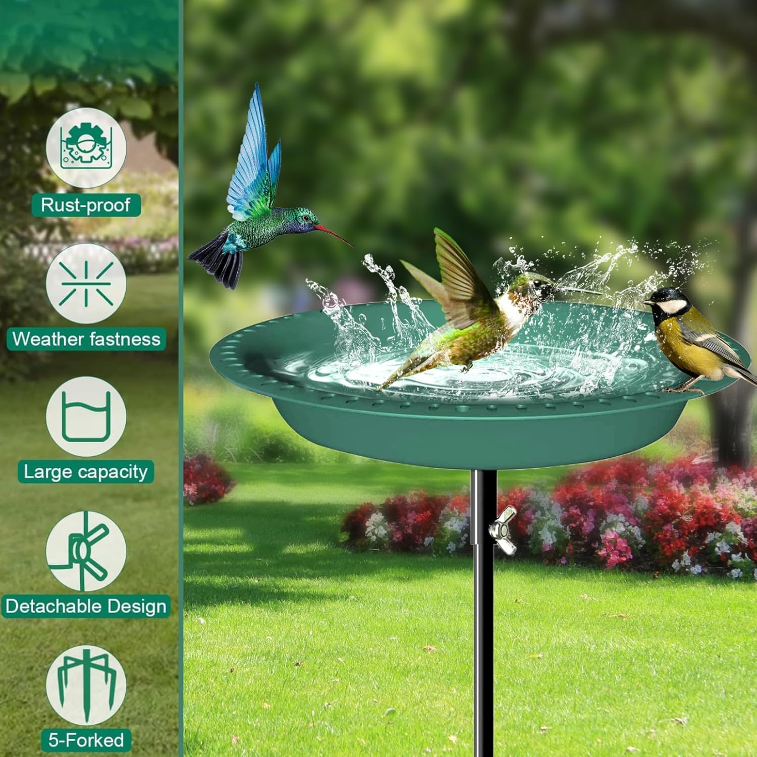 Description: A Favorite of Bird Lovers, This birdbath can be a superior and elegant decor in your outside areas, or a special, decent festival for wild bird watchers and nature lovers. This deck bird bath adds a unique, stylish, and versatile look to your home and garden and attracts the wild birds so you can feel good to see and hear when the birds chirping and add liveliness to your place. Easy Cleaning Just take the bowl out of the ring holder when you notice bird droppings, or dust buildup accumulating on the bird bath bowl. And it is very easy to clean and fill. Keeping it clean is very important for the health of birds. Features:. Bird Bath. -Color: green, black. -Material: metal. -Size: height: 90 cm/35.43 inch. Note: Manual measurement, please allow slight errors on size. The colors may exist slight difference due to different screens Package Including 1 * Bird Bath