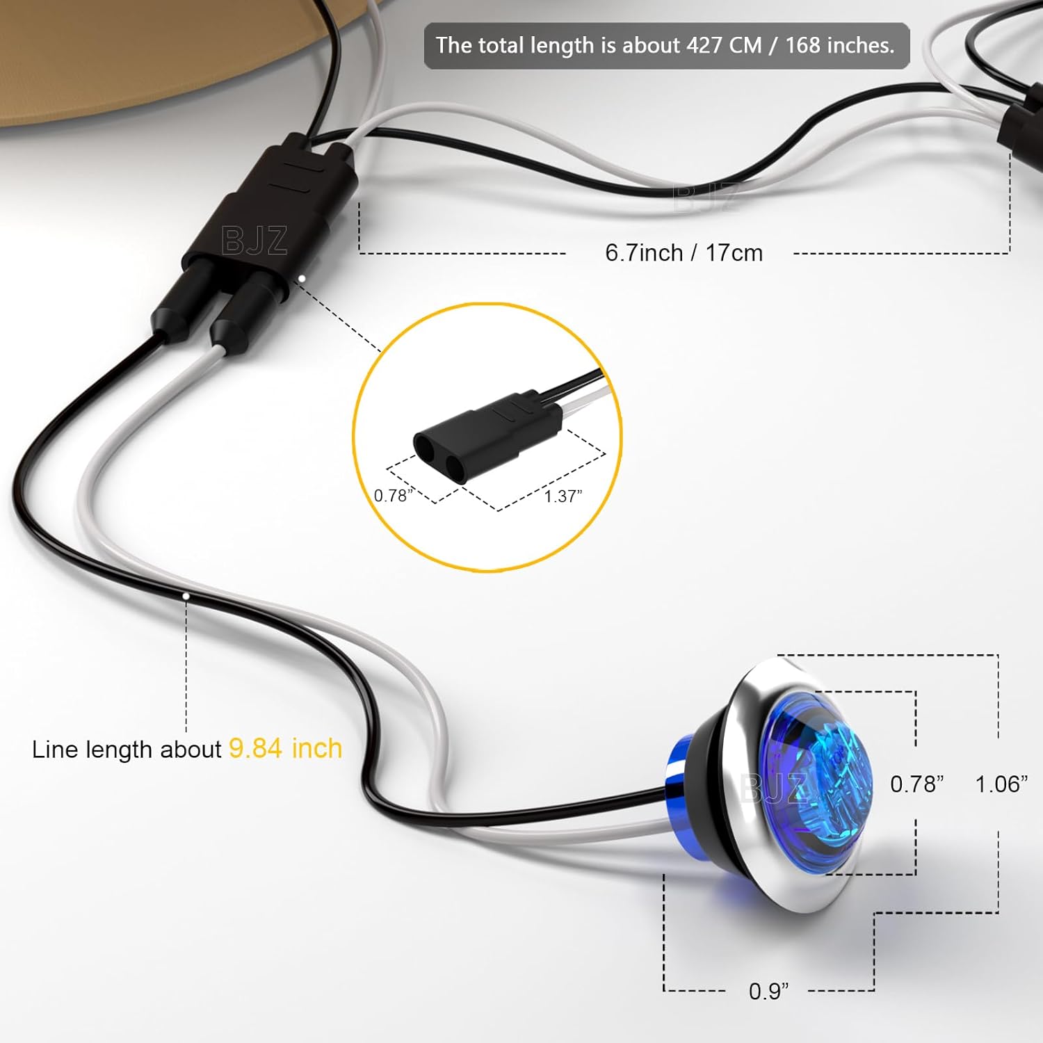 | Included Components | 3/4'' round blue led marker lights w/ plug, 3/4'' round Stainless Steel Trim Ring Bezel, 2 Prong Continuous Wire Harness |