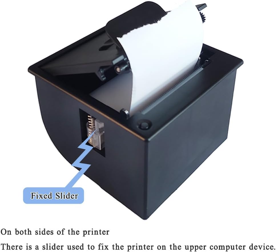 The thermal paper used by printers is a common thermal paper roll on the market; The paper bin can accommodate a paper roll with a diameter of 50MM at most.This thermal receipt printer supports the voltage range between 9V and 24V and the maximum voltage cannot exceed 24V. Otherwise, it will burn the motherboard and make it unusable. It is recommended to use 3A for current; The printer is mainly embedded in the equipment, so it is equipped with a 2Pin power terminal line. The printer comes with its own paper bin, which can accommodate the paper roll with a diameter of 50MM, thus reducing the frequency of paper changing efficiently. The printer provides RS232/TTL+USB physical interface,which is convenient for you to choose different interfaces to connect to the upper computer. which is TTL by default. Due to the limitation of space, it is impossible to show how to switch. If you need to switch to RS232, you can contact us by email, and we will tell you how to switch in the form of a document.This printer also comes with a paper tearing device, which can quickly and conveniently tear off the printed receipt paper manually and quickly!This thermal bill printer can print clearly,which can be easily embedded in testing instruments to realize the function of data printing. The printer can be connected to platforms such as Arduino, MCU, Android, Linux and Windows, and Android provides a secondary development kit. You can easily print text, pictures, barcodes, QR codes, etc.Product packing list: Thermal Receipt Printer *1 (Black); 2Pin Power Cord * 1; RS232/TTL Serial Port Line * 1; USB cable*1; Thermal Paper Roll * 1; (Specification 57*40We really like this printer because its easy to make Bold, underline , inverted text , variable line spacing, left/center/right justification, barcodes with adjustable height, and even custom QR code.In order to help you realize the development easily, we have compiled a more common example of instruction set printing according to customers' common instructions. After submitting the order, we will send you this printing example and development materials by email. You can change what you need to print according to our example. Super convenient!