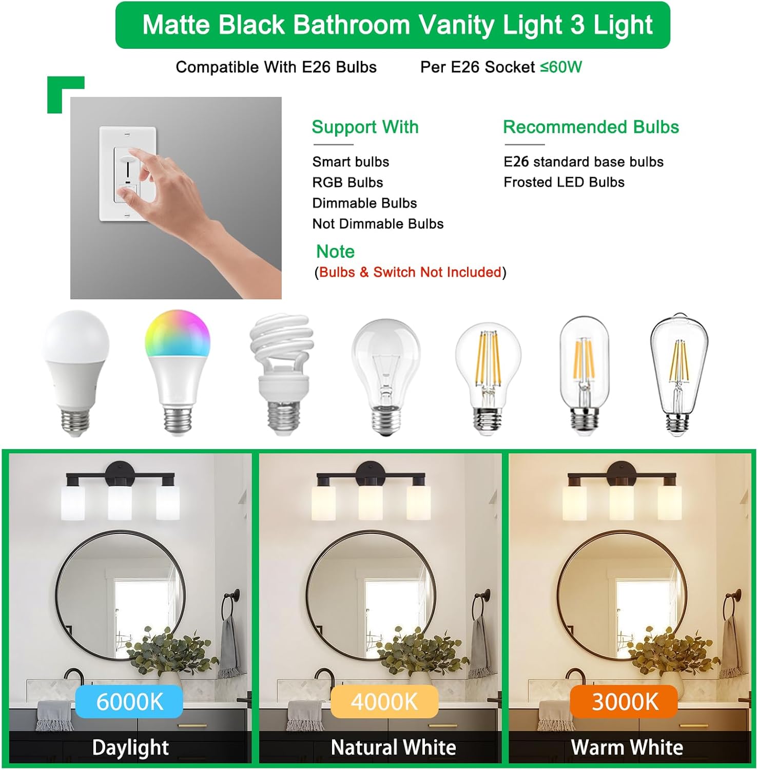 | Room Type | Bathroom, Bedroom, Living Room, Over Mirror, Vanity |