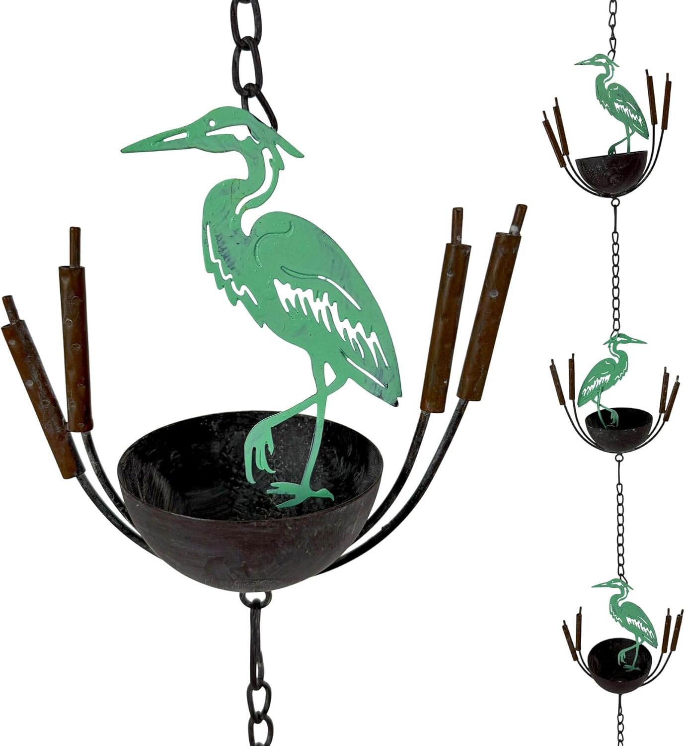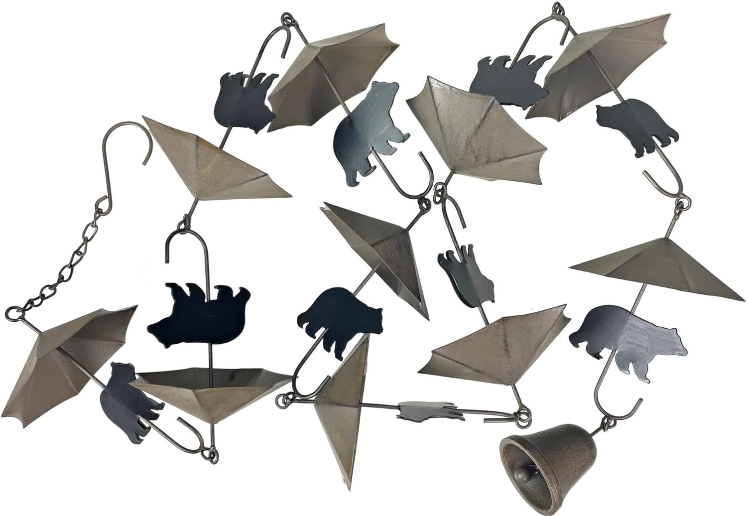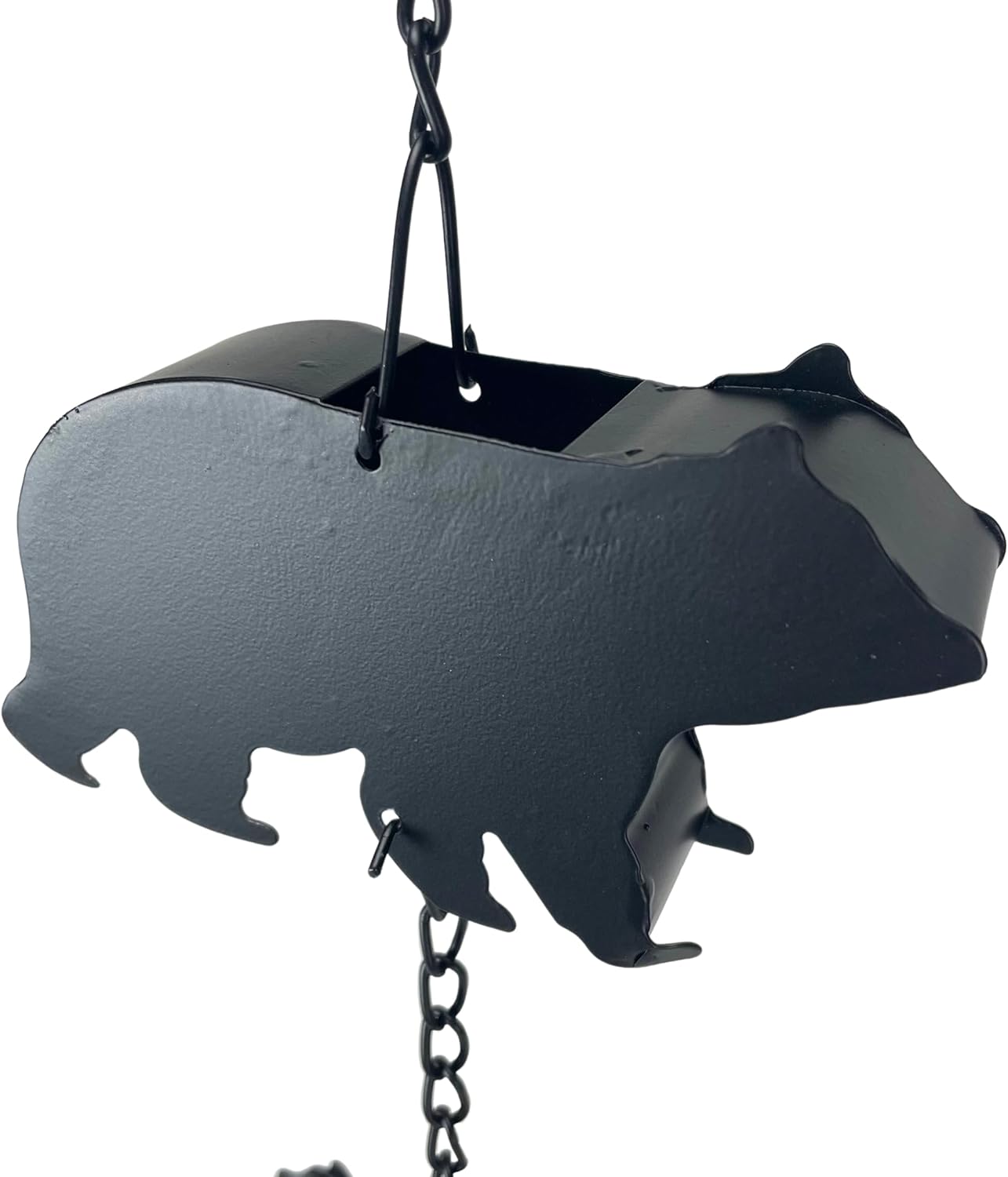 Bring a whimsical woodland vibe to your outdoor décor with this 75-inch-long rain chain featuring eight three-dimensional black bear designs. Each bear measures 6 inches long and 1.25 inches wide, creating a playful yet functional way to guide rainwater into a barrel, bucket, or watering can. The sleek black finish gives the chain a striking, versatile look that complements any garden, patio, or gazebo. A weighted bell at the bottom ensures stability in windy conditions while producing a gentle wind chime sound, blending practicality with decorative appeal. Perfect for replacing standard downspouts, this rain chain offers an eco-friendly solution for collecting water for gardening or household use. Crafted from durable materials, it’s designed to withstand all weather conditions, ensuring lasting beauty. Whether used as a functional accessory or a decorative accent, this black bear rain chain makes a thoughtful gift for nature lovers and gardening enthusiasts alike.
