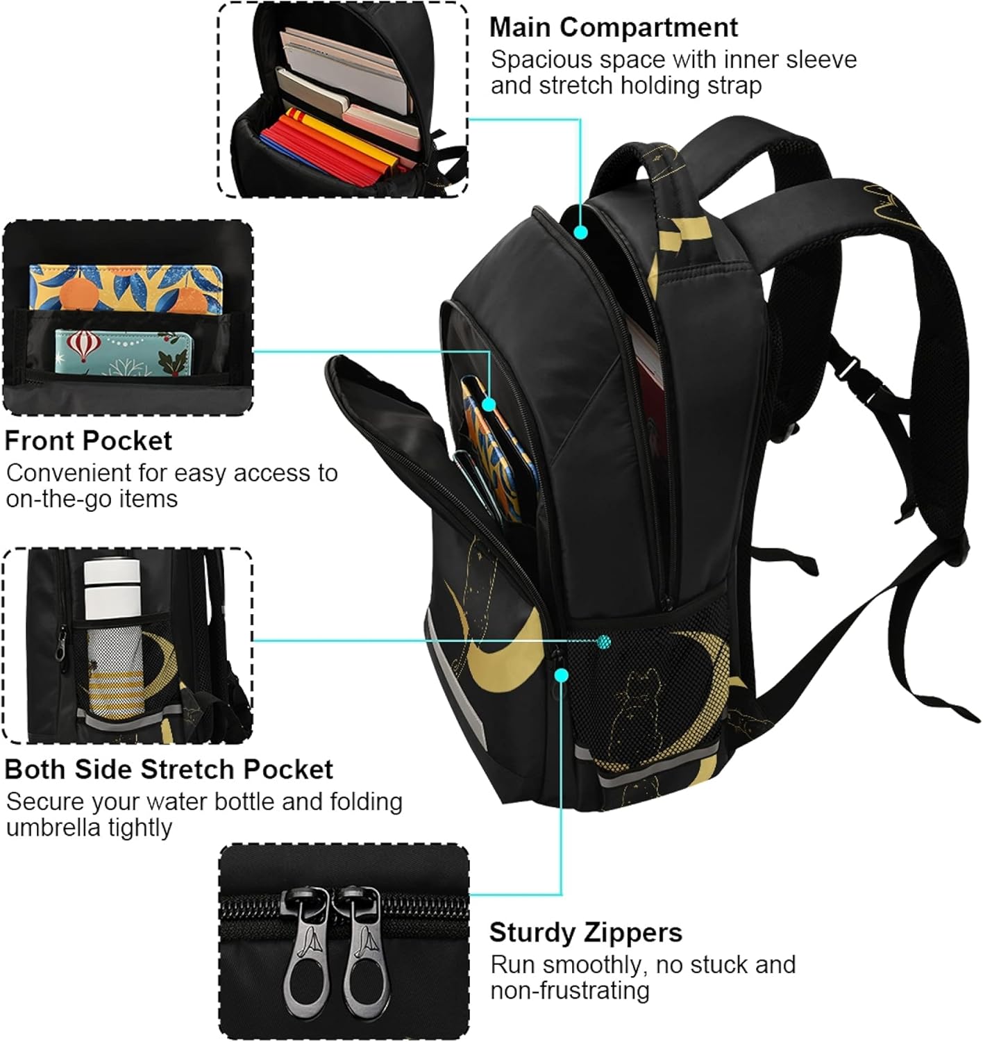 Black Cat Moon Backpack Laptop School Book Bag Lightweight Daypack for Men Women Teens Kids