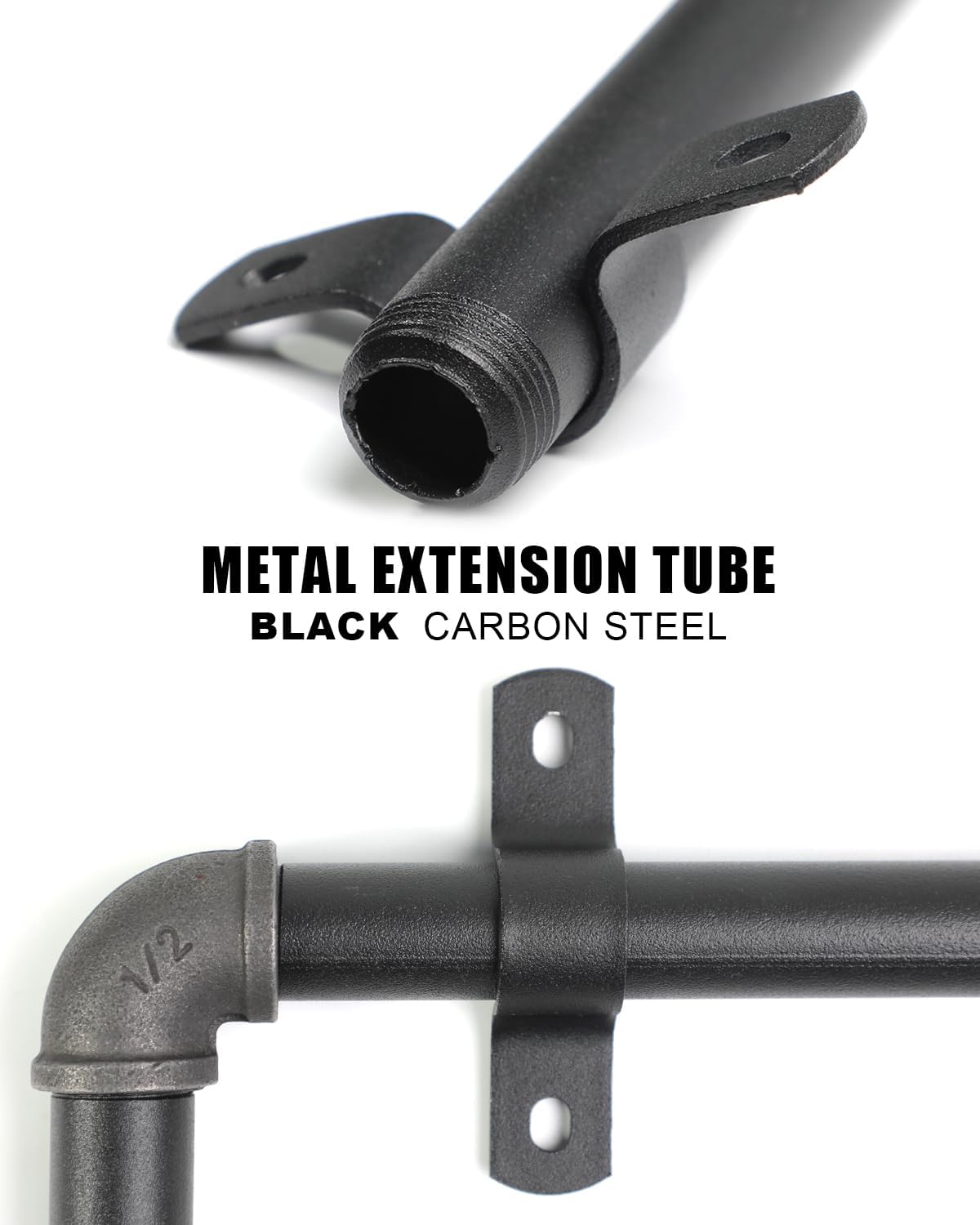 Black Metal Extension Tube Dual Male Threads Diameter: 1/2 inch For industrial decor, shelves, tables, cabinets, clotheslines, etc.