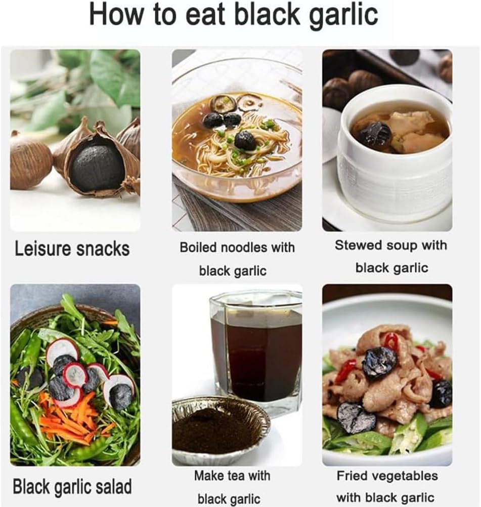 Black garlic has a unique bittersweet taste, with no bitter garlic taste or smell. It's loaded with antioxidants, anti-acidification properties, and health benefits, making it an ideal ingredient for a healthy and nutritious diet.Use the high-quality black garlic fermentation tank today and enjoy delicious, nutritious black garlic in the comfort of your home!Name: Black Garlic FermenterColor: purpleInput power: 90WAmbient temperature: 0°C to 45°CSurrounding air relative humidity: less than 90%Rated volume: 3LAutomatic temperature control: about 80°C to 3°C from the 1st to the 3rd day, about 70-80°C from the 5th to the 12th day.Heater power: upper 30W, middle 30W*2Automatic fermentation duration process: 12 days (288H time difference 2% soil)Power cord length: 113cmNet/Gross weight: 1643g/2405gPackage Includes:1* Black Garlic Fermenter1* Power cord1* 2-layer inner rack1* Instruction manualNote:1.Due to manual operation, please allow 1-3mm error.Color may vary from monitor to monitor.2.If you have any questions about this product, please feel free to contact us. It will be our honor to provide you with a satisfactory shopping experience.
