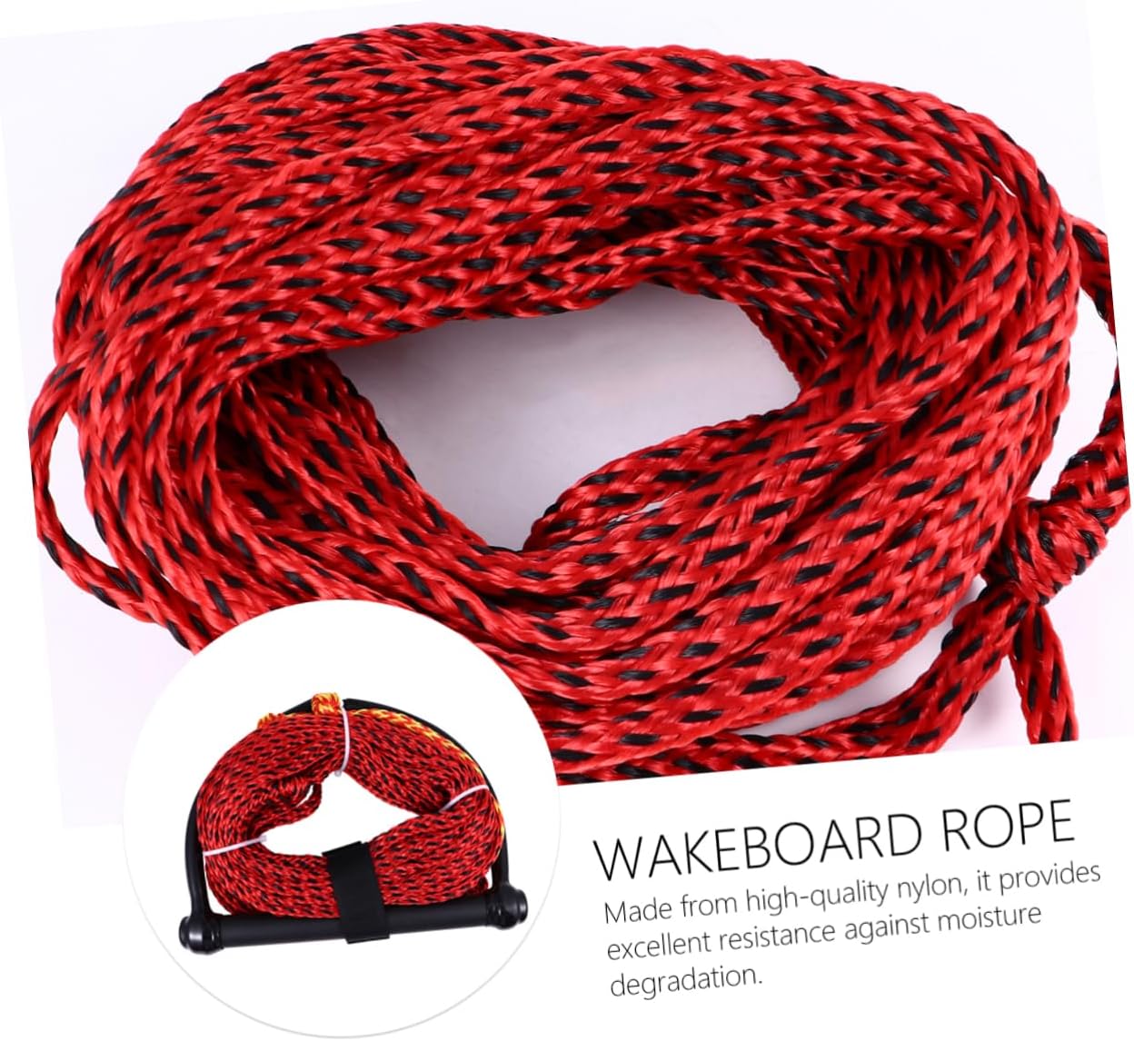 Package List 1 ski rope Features - Size: About 2300.00X0.80X0.80cm/903.90X0.31X0.31inch water sport rope. - Material: Nylon Waterskiing Rope. -Product Info:Water skiing rope - The braid structure makes this a lightweight, easy to handle rope ski rope. - The wakeboard rope features a lightweight, yet sturdy handle water ski towing rope. - ColorBlack water-skiing rope - Made from nylon, it provides excellent resistance against moisture degradation kneeboard for boating. - Bright color, easily be seen on the water, high abrasion and UV resistance wakeboarding rope. - Suitable for slalom water skiing, wakeboarding, knee boarding or hooking the rope up that bit closer to the boat water skiing rope.Goods Descriptionboat ski rope This item is a single section ski rope is designed for all water sports, including water skiing, wakeboarding, tubing, and kneeboarding.Boating Rope 1-section water ski ropes are for beginners who have very little experience