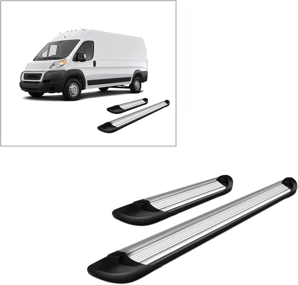 Black Horse Transporter Running Boards Silver Compatible with 2014-2025 Ram ProMaster 1500|2014-2025 Ram ProMaster 2500|2014-2025 Ram ProMaster 2500|2014-2025 Ram ProMaster 3500-TR-D13596S