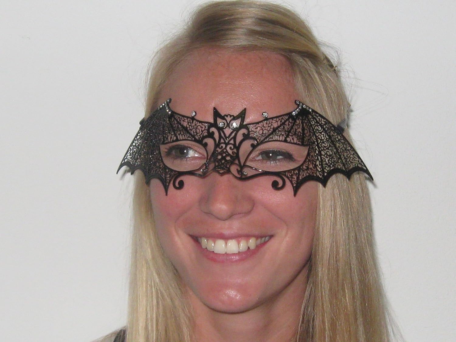BEAUTIFUL FEATURES OF VENETIAN MASQUERADE MASK: - BLACK laser cut metal HALLOWEEN BAT mask. - Crystal jewels from Swarovski, the great European maker of fine crystals jewelry. - This light weight delicate mask can be worn as it has black satin ribbons. - This mask art was selected personally from the artist and has tags from the artists studio guaranteeing the AUTHENTICITY. - The Venetian Mask is 3 inches high by 8 inches wide . - This would make a wonderful piece of art for the serious mask or costume collector. - Place in a shadow box after your HALLOWEEN costume ball for your art collection.