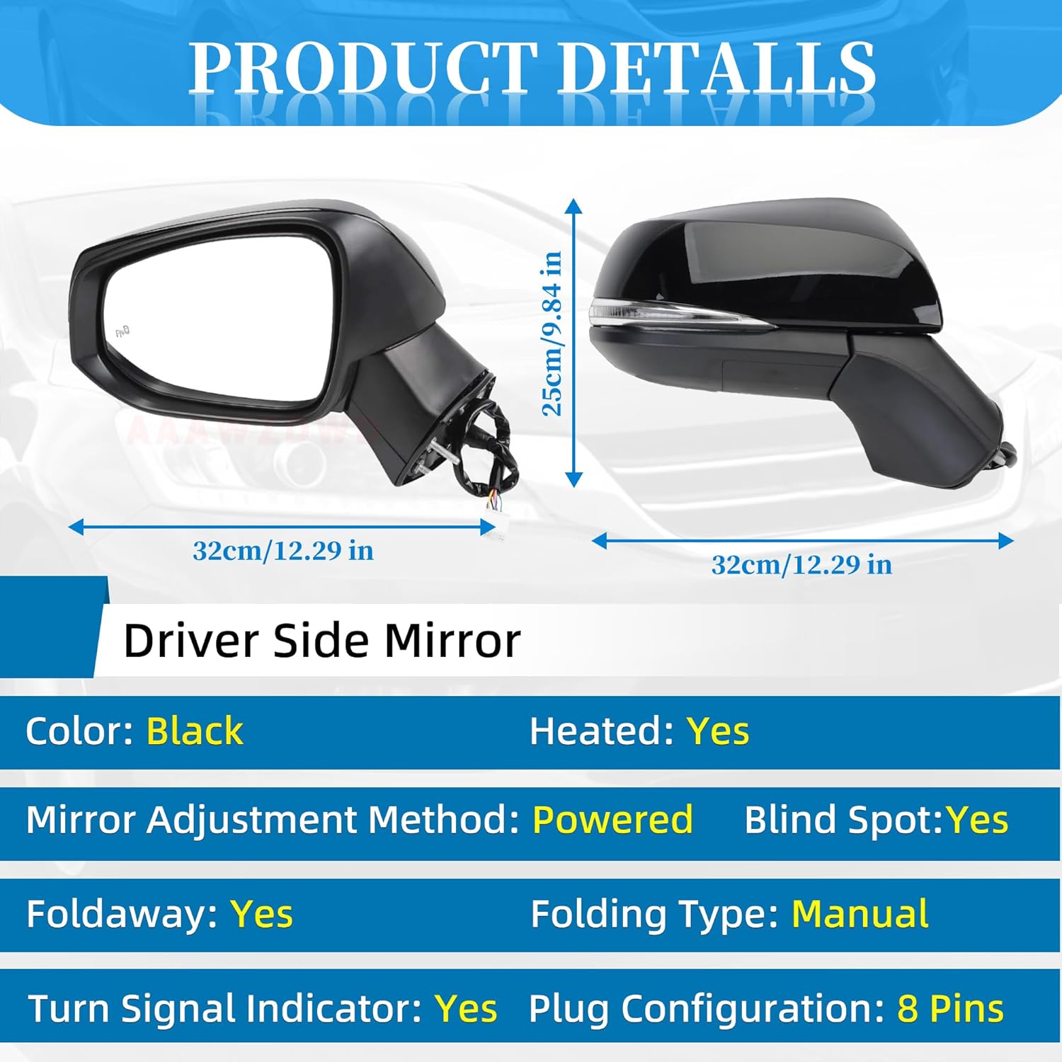 For Toyota Rav4 Side Mirror Replacement Color: Black Heated: Yes Mirror Adjustment Method: Powered Foldaway: Yes Folding Type: Manual Turn Signal Indicator: Yes Blind Spot:Yes Plug Configuration: 8 Pins Package Includes: 1 x Driver Side Mirror(Left Side) Reference #'s TO1320384 TO1320388 879400R271 879450R140 Compatible models: For Toyota Rav4 2016 2017 2018 2019 2020 2021 2022 Side Mirror For Rav4 Side Mirror Due to the differences in different years and models, please confirm your original size before purchase to avoid purchasing error