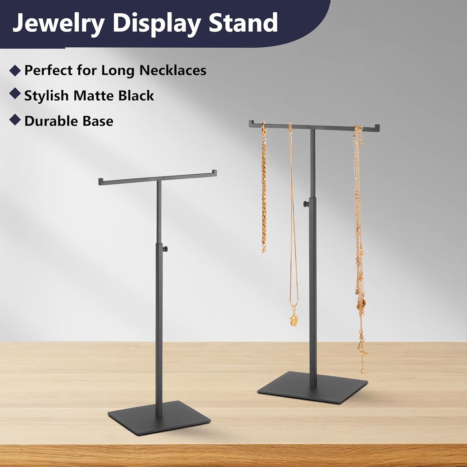 Upgrade Your Retail Display with This Premium Stand Bundle!This 2-in-1 set includes two black Single Hook Purse Stands for hanging handbags and two black T-Bar Stands for draping and layering. Made from durable metal with weighted anti-slip bases, these stands keep your merchandise organized, secure, and eye-catching – whether in stores, pop-up shops, or trade shows.✔ Sleek Matte Black Finish – Complements any décor without distracting from your products.✔ Space-Efficient Design – Fits seamlessly on tables, counters, or shelves.✔ Ideal for Retailers & Exhibitors – Boost sales with professional, tangle-free handbag displays.Get both stand styles in one cost-effective bundle – perfect for small businesses, boutiques, or fashion vendors!