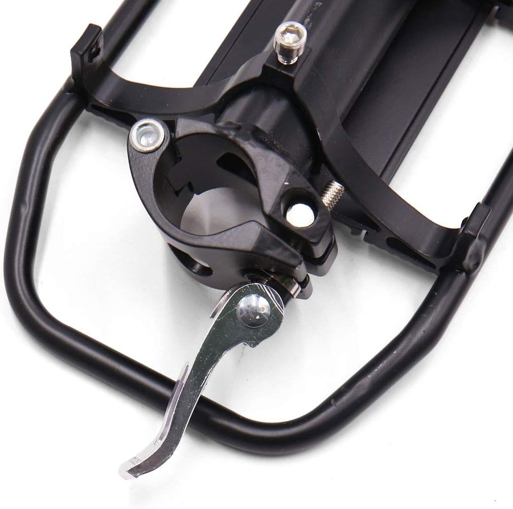 Black Seat Post Mount Rear Rack Luggage Carrier Shelf Bracket Set for -bike This bike rack is made of aluminum alloy material. It can be firmly attached to the saddle post of your bike. Quickly installed and removed, it will definitely add to your fantastic cycling experience! Attach firmly to the saddle post of your bike. Suitable for bicycles whose diameter of the saddle is less than 28 mm. Adopt high strength Aluminum material, durable and sturdy. Quick installation and removal. Installation hardware is included. Package include: 1 x Bike Rack Shelf