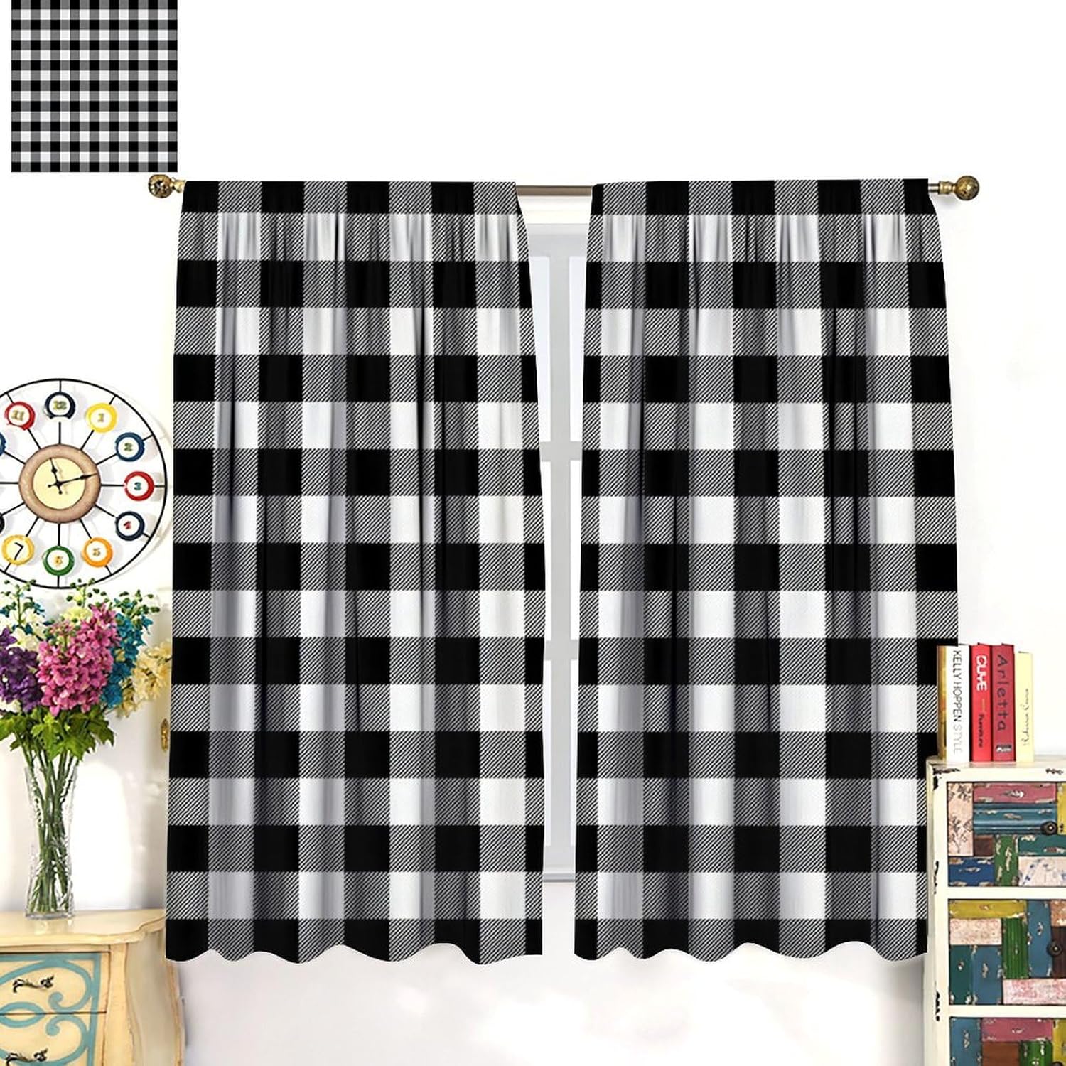 Product description High Quality Materials : Our window curtains are made of 100% high-quality polyester fabric with a soft, silky feel that complements most decor. The soft fabric is upmarket and durable, Our curtains can withstand years of use thanks to their quality finishing.Suitable for your bedroom, living room, dining room, infant room, kids room, nursery, office, hotel or other public place Blackout Curtains : Leading high-definition digital printing technology to ensure long-term use without fading, environmentally friendly, breathable, durable, anti-wrinkle. Keep the light out and help to retain the warmth in winter and keep the cool in the summer.Without chemical coating, which is healthier and safer for people, especially babies and kids.High performance on blocking out full light, UV prevent and furniture protection, bring the uniform style indoor of your house Good Workmanship : No loose threads.Premium sewing threads and stitching.All seams and hems are aligned.Do our best in every detail Easy Care : Our drapes are easy to maintain, with hand-washable material that is also ironable at a low temperature.Machine washable. Mild detergents do not bleach. Low temperature ironing