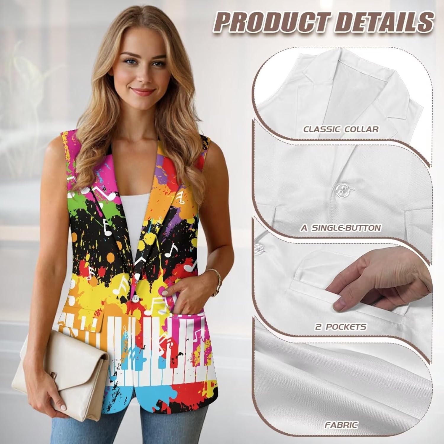 Tips: Loose blazer jackets for women trendy machine wash cold or hand wash / hang or air dry / no bleach. Size: S: Length-65cm/25.59", Bust-93cm/36.61"; Waist-89cm/35.04" M: Length-66.5cm/26.18", Bust-98cm/38.58"; Waist-94cm/37.01" L: Length-68cm/26.77", Bust-103cm/40.55"; Waist-99cm/38.98" XL: Length-69.5cm/27.36", Bust-108cm/42.52"; Waist-104cm/40.94" 2XL: Length-71cm/27.95", Bust-113cm/44.49"; Waist-109cm/42.91" 3XL: Length-72.5cm/28.54", Bust-118cm/46.46"; Waist-114cm/44.88" 4XL: Length-74cm/29.13", Bust-123cm/48.43"; Waist-119cm/46.85" 5XL: Length-75.5cm/29.72", Bust-128cm/50.39"; Waist-124cm/48.82"