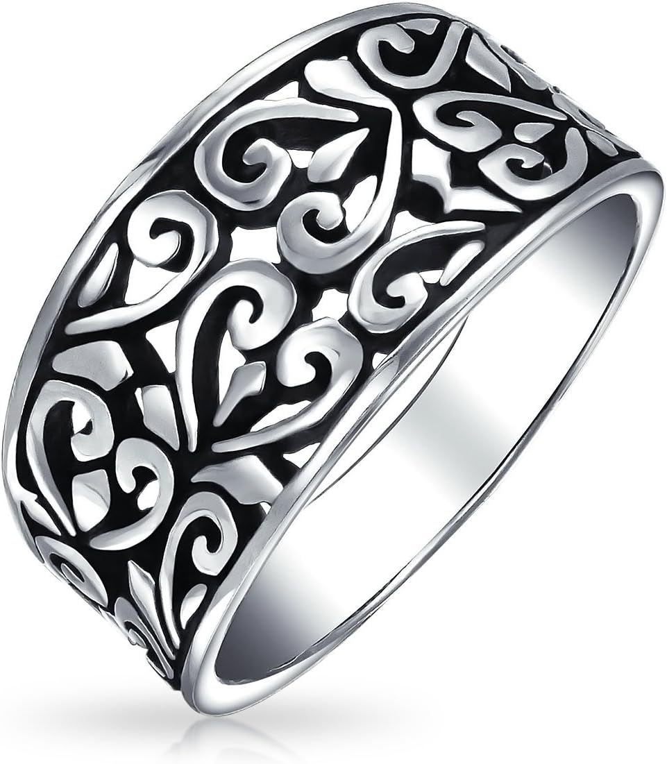 Discover timeless elegance with this sterling silver filigree band. Intricate design throughout. Perfect gift for any occasion. Alluring and beautiful. Enjoy this .925 sterling silver ring for years.