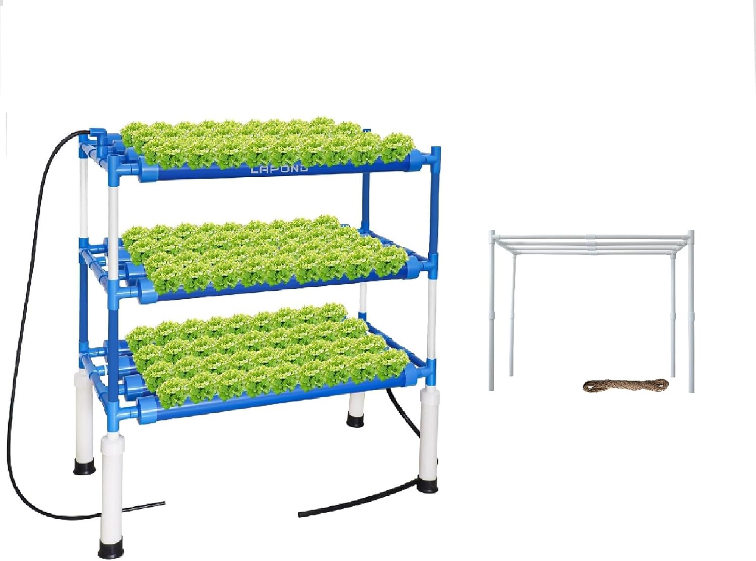 Widely Use: Offers 108 sites in 3 layers with a 2.5" tube diameter;This hydroponic gardening system is made from high-quality food-grade PVC pipes, which are thickened and wear-resistant.Great for leafy vegetables such as lettuce, rape, celery, beets, bell peppers, garlic seedlings, canola, and more.Perfect for gardens, balconies, and other indoor and outoors