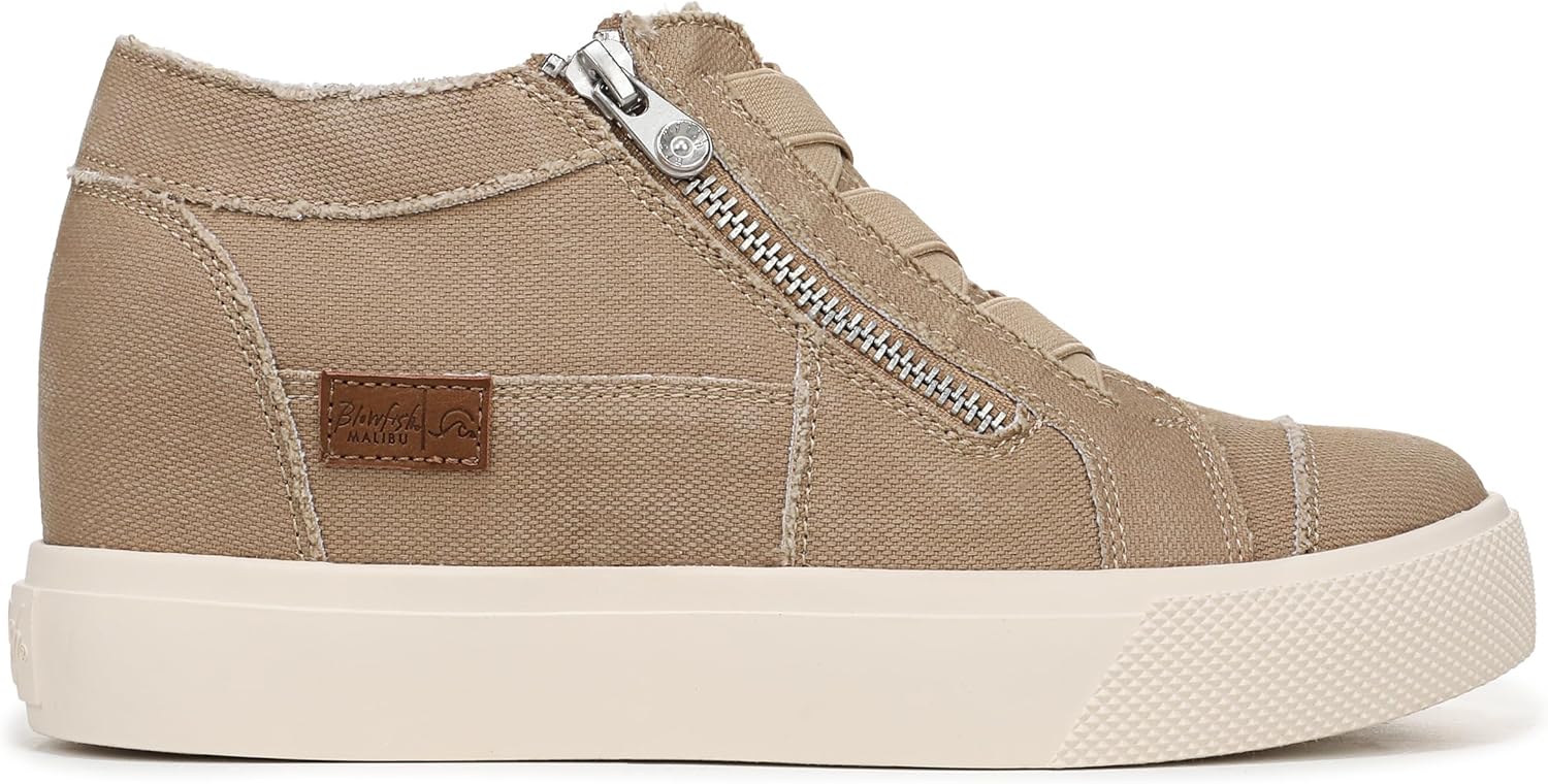 Give your SoCal style a lift in the oh-so-cool Zayla sneaker from Blowfish Malibu. Features include a hidden wedge, zipper closure, and stretch gore for easy on/off. Canvas upper. Outside zipper and crisscrossing stretch gore straps for easy on/off. Round toe. Hidden internal wedge for extra lift. 2 inch platform.