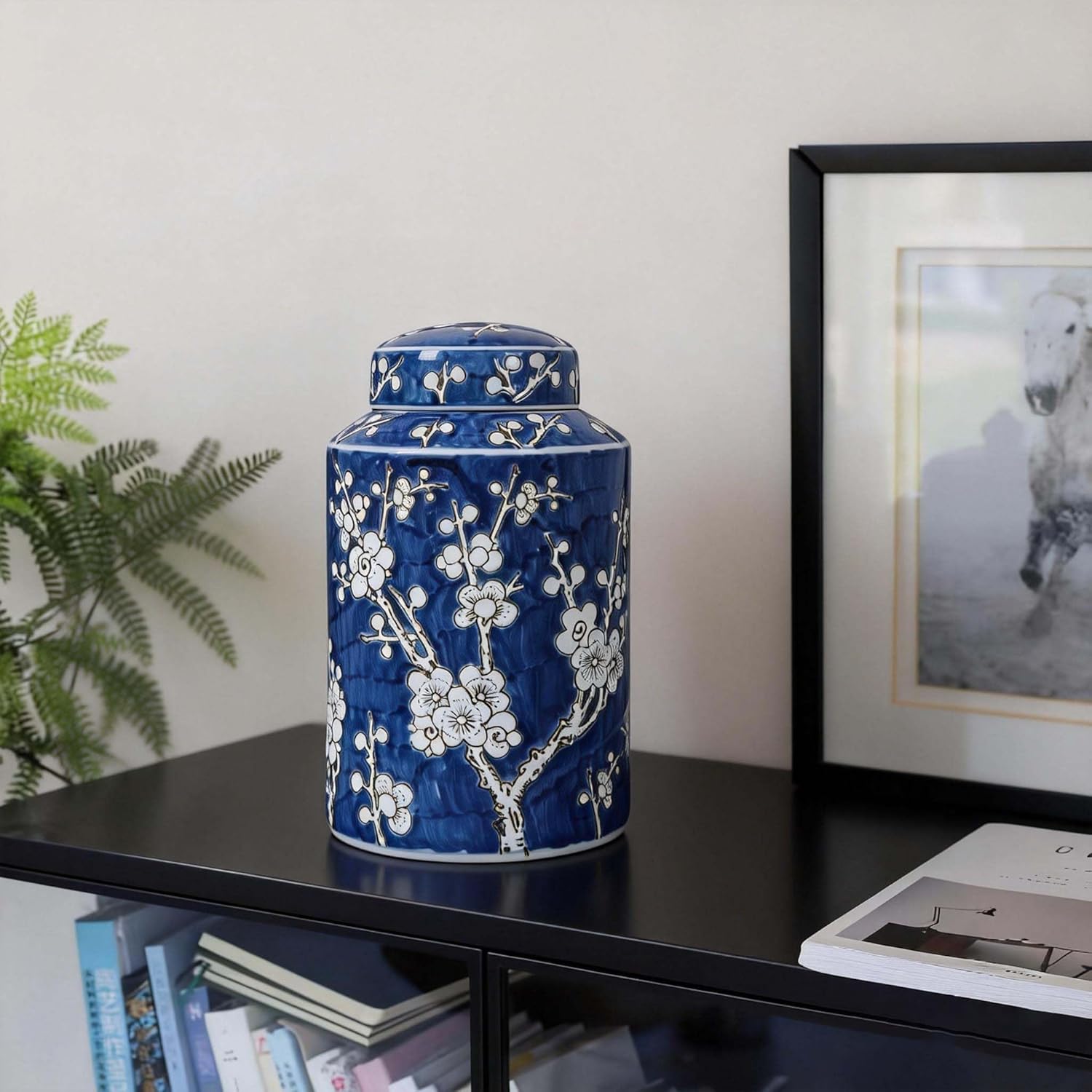 Elevate your home with the timeless elegance of our 12" Blue and White Ceramic Tea Jar. Hand-painted with exquisite chinoiserie decor, this ginger jar vase effortlessly blends functionality with artistry, making it the perfect addition to any living space. Crafted from high-temperature ceramics, this decorative jar with lid offers superior durability while maintaining the delicate beauty of traditional porcelain. Its generous 7" x 7" x 12" dimensions provide ample storage for loose leaf tea, coffee, cookies, or honey, keeping your kitchen essentials fresh and organized in style. Each blue and white vase in our collection reflects our commitment to authentic craftsmanship. The intricate hand-painted patterns showcase meticulous attention to detail, transforming ordinary storage into a statement piece for your shelves or cabinets. Imagine serving guests from this stunning tea container, its classic blue decor adding sophistication to your tea time ritual. Whether displayed as a standalone decorative vase or used as a functional ginger jar, this piece brings European charm to modern homes. Discover the perfect balance of form and function with our premium ceramic decor today.