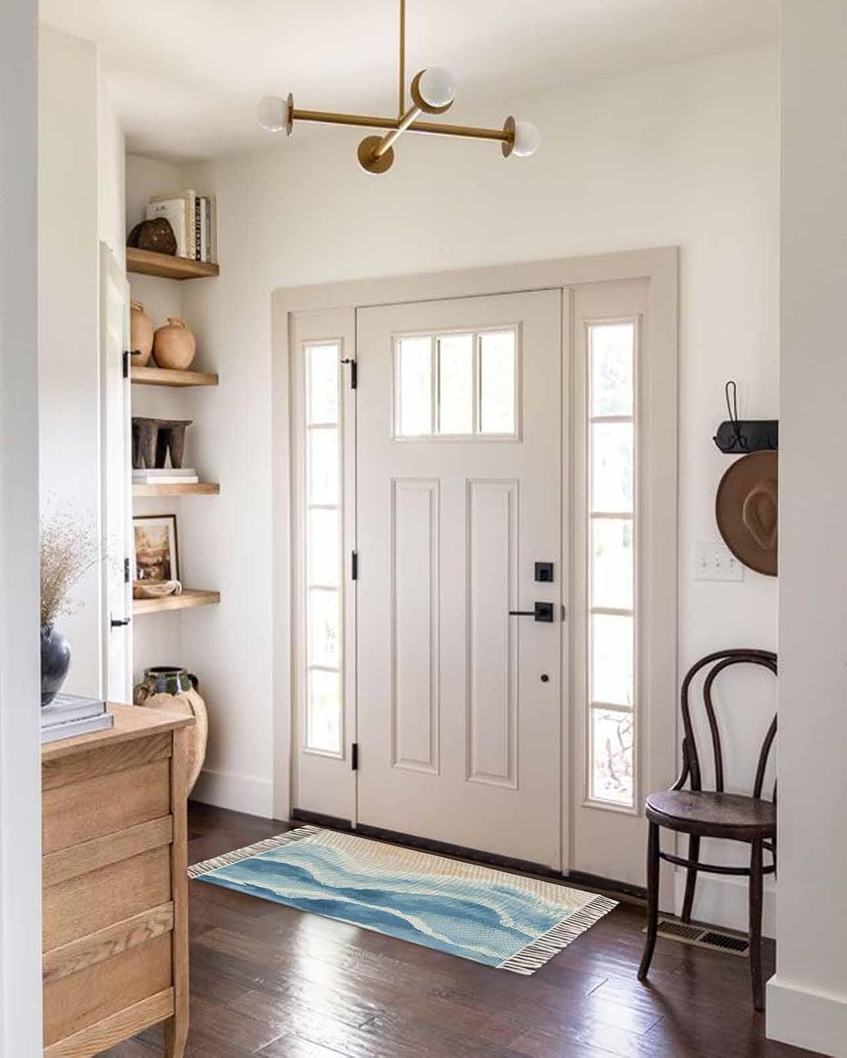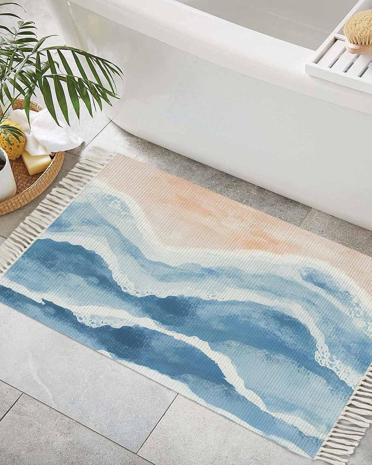 Kitchen Runner Rug Carpet for Living Room, Bedroom, Bathroom, Dining Room Well Made Rug Runner Made of cotton and polyester blend, the woven rugs for living room is soft and comfortable, light and breathable. The non-slip, low-profile, easy-to-clean rug runner is suitable for kitchen, bathroom, living room, bedroom, dining room, etc. Neat Tassels Edge Made with exquisite craftsmanship and fine stitching, the rug with pretty tassels and smooth seams can not only add charm to home decoration, but also withstand repeated cleaning and use without fading. Multicolor Rug for Bedroom Decor This rug is printed with bright patterns and colors. Our bedroom runner rugs are available in a variety of colors to match any home living room decoration. Non-Slip Rug This dining room rugs for under table can cover on smooth floor, prevent slipping, and protect your floors from water stains, pet scratches, children graffiti. Foldable Bathroom Rug Mat The cotton woven soft rug for nursery can be easily folded and stored, making the nursery rugs easy to store and carry. Multiple Size 2'x3' Front Back Door Mat: The 2x3 ft wekcome doormat can be used as front doormat, back doormat, shoe mat, dog mat, entrance mat, even small rug for entry, entryway rug, etc. Kitchen Runner: The runner rug have 2x4 ft, 2x5 ft, 2x6 ft, can used as kitchen runner, bedside rug runner, hallway runner, hall runner rug, etc.. Area Rug: The area rug have 3x5 ft, 4x6 ft, can used as bathroom rug, washable rug, kitchen rug, bath mat runner, classroom rug, cotton rug, rug for dining room table, entryway runner, kids playroom rug, entryway runner rug, baby rugs for nursery, kitchen mats for floor, textured rug. Specification Material: Polyester&Cotton Package: 1 x Area Runner Rug