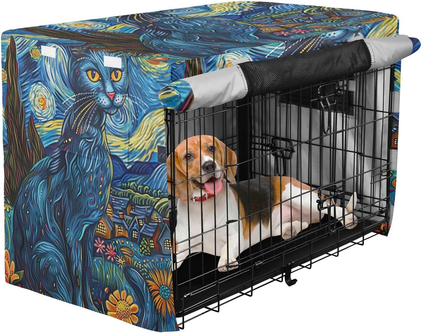 Weather-Resistant Dog Crate Cover is made of 600D silver-coated oxford fabric that provides exceptional protection against wind, rain, and sunlight. This material prevents your pet from scratching the crate and blocks most direct sunlight, ensuring a safe and comfortable space.Simple and Secure Setup features an easy fastening system, making it effortless to install without the need for tools. This indoor dog crate cover fits securely onto your dog crate, ensuring it stays in place and provides protection at all times.Ventilation for Comfort with mesh windows on all sides, our water-resistant dog crate cover ensures optimal airflow, keeping your pet cool and comfortable even during long periods inside the crate. The mesh design also provides privacy and security for your pet.Wind-Resistant and Stable with four adjustable tie-down straps at the bottom, this foldable crate cover stays securely in place, preventing it from being blown away by the wind or removed unintentionally. This feature ensures that your pet’s crate remains stable and protected.Versatile Use Ideal for both indoor and outdoor settings, this travel pet crate cover provides the protection your pet needs in various environments, whether at home or on the go. The compact design makes it easy to store and travel with.