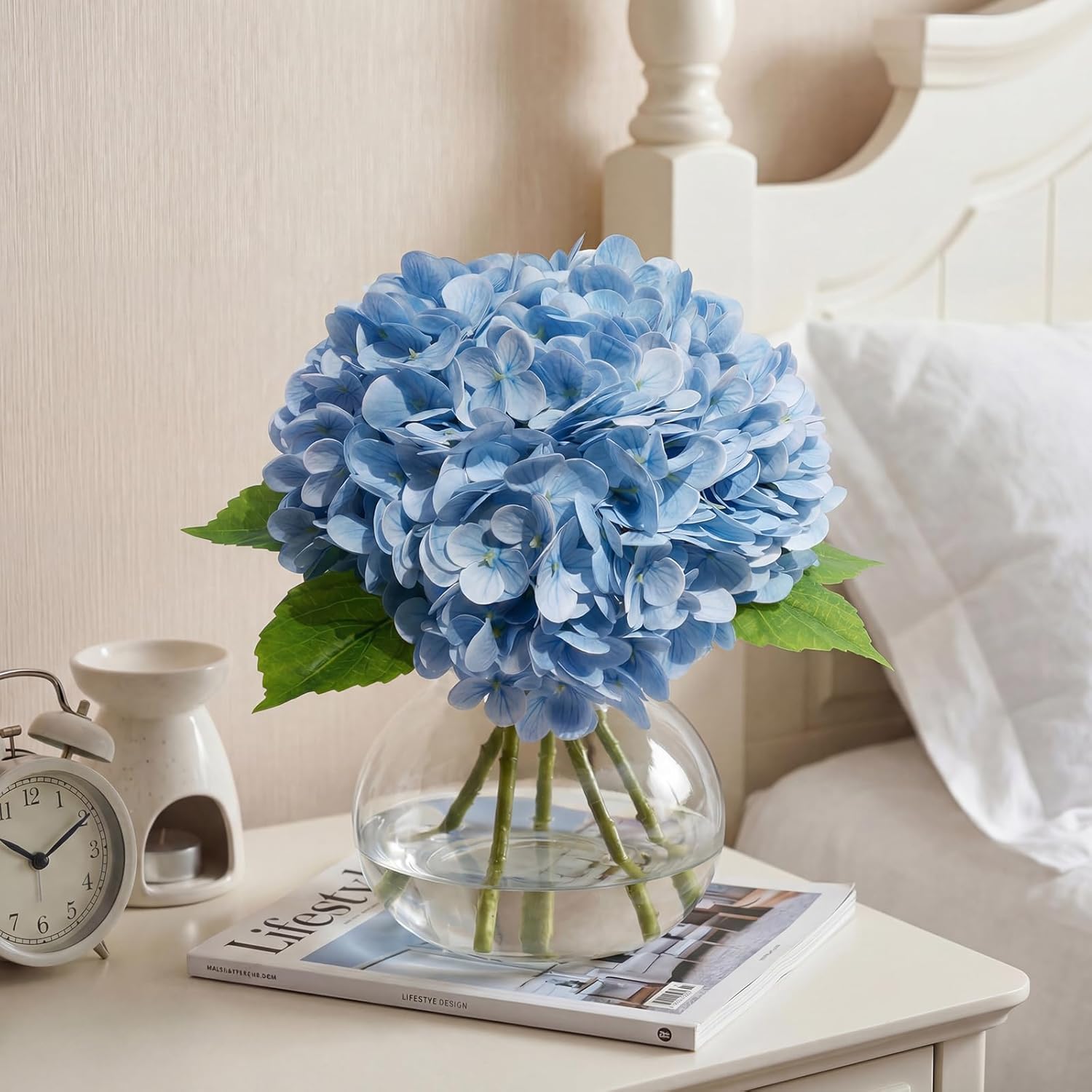 AMORISE Hydrangea Artificial Flowers with Vase, Blue