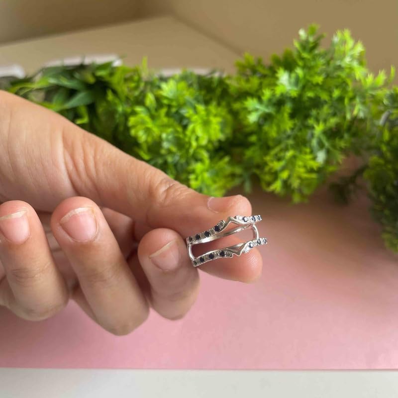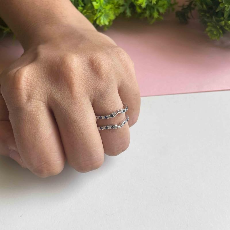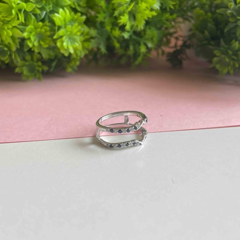 This Band Crafted in 925 Sterling Silver, available in 14K White, Yellow and Rose Gold Plating. Round Cut simulated Sapphire & Diamond set in prong setting.