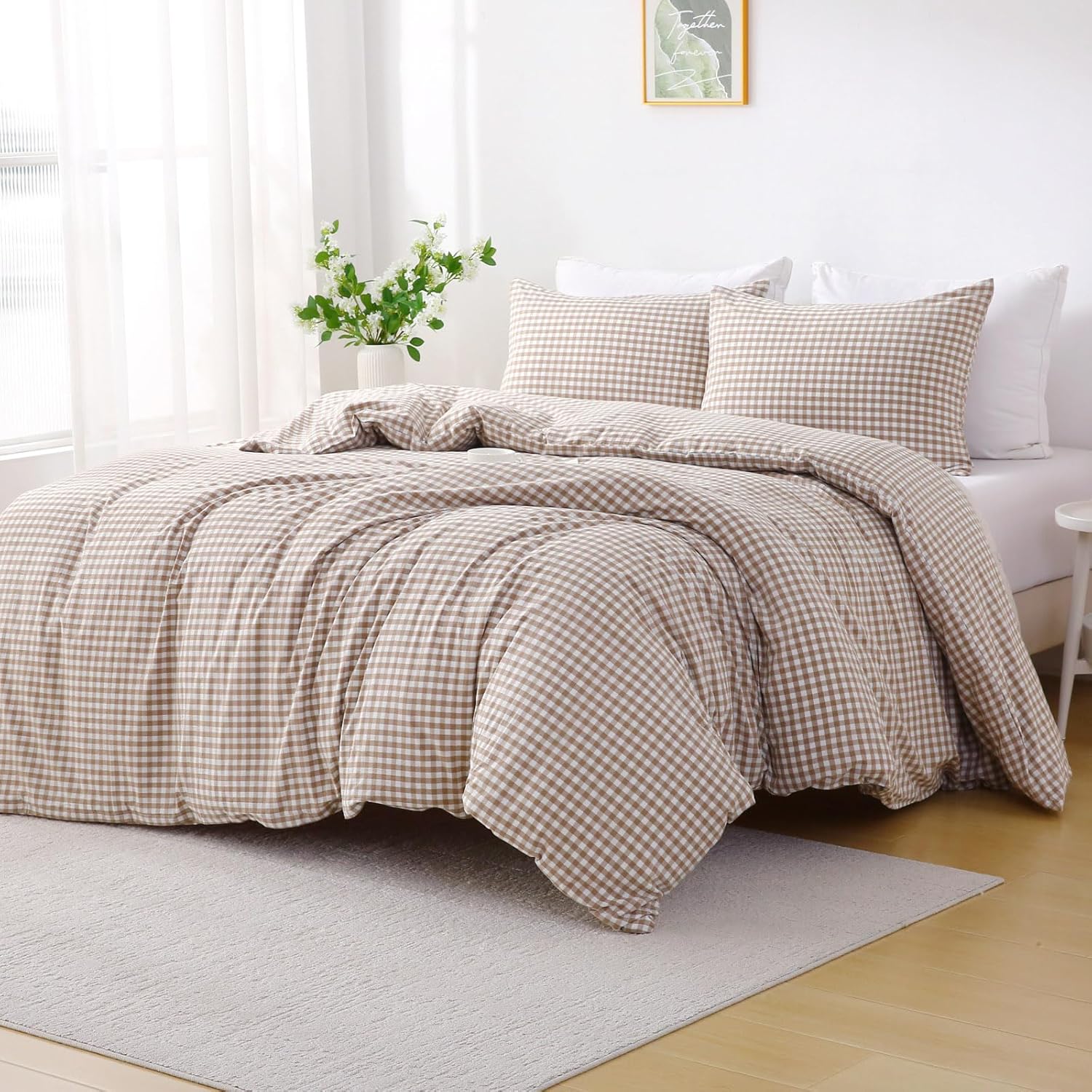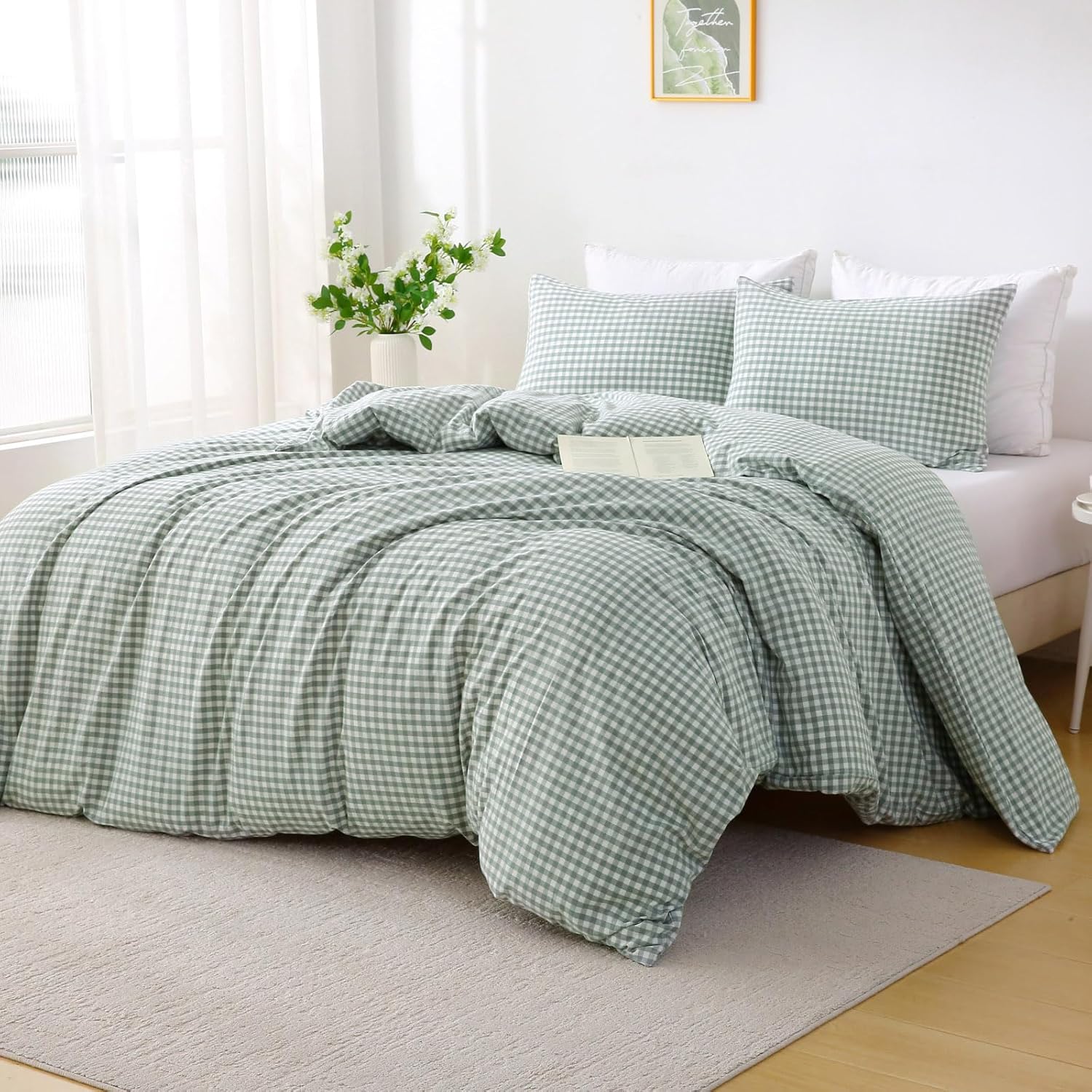 Mywinle Blue/White Gingham 3-Piece Duvet Cover Set Queen Size Soft Washed Cotton Plaid Checkered Bedding Set for Bed Room