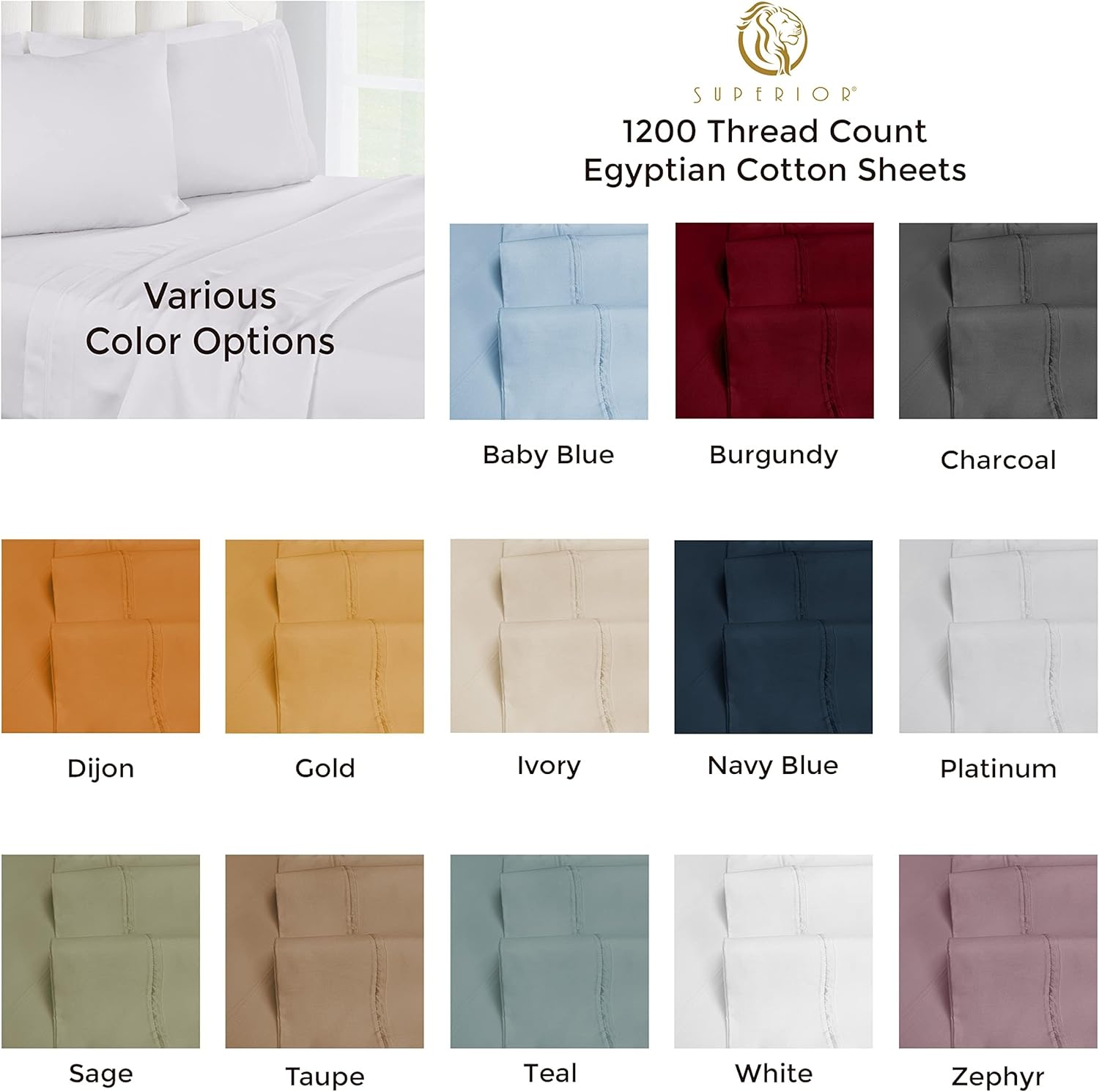 Instantly update any bedroom with the eye-catching design of the Egyptian Cotton Embroidered Geometric Scroll Sheet Set by Blue Nile Mills. Crafted from our most luxurious Egyptian Cotton, this 1200 thread count sheet set is breathable, ultra-soft, and perfect for every day use. Each flat sheet and pillow case features a geometric scroll embroidered hem and luminous sheen from the sateen weave for a polished look. The deep pocket fitted sheet fits mattresses 15-18 inches thick. Available in a solid white color with contrasting embroidery colors, including; charcoal, navy blue, taupe, or white, easily refresh the look of your bedroom with this bedding set.