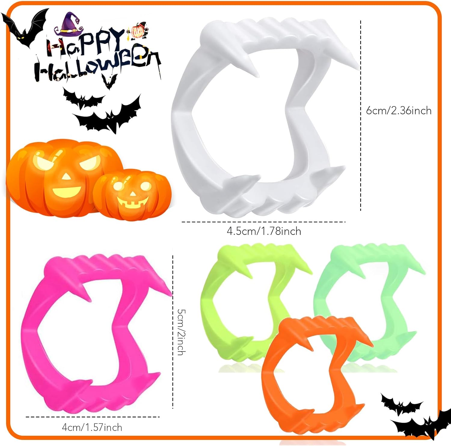 Features: Occasions: The Halloween plastic teeth are suitable for church, school classroom events, vampire cosplay party, or vampire parties and Halloween party, boys and girls will love them. Widely applications: These bright color plastic vampire teeth not only can put into mouths, to cosplay a vampire, but also can be decorations of your party, for example, you can put the fake teeth on the cake, biscuits, tables, wall, make the party be horrible and scary. Specifications: Quantity: 15 pieces Colors: rose red, green, orange, yellow, white Material: plastic Size: White: about 2.36 x 1.78 inches/ 6 x 4.5 cm (LW) Colorful: about 1.97 x 1.57 inches/ 5 x 4 cm (LW) Package includes: 15 x Vampire teeth Warm notes: Inedible items, please do not eat them. Please keep them away from boys and girls under 3 years old.