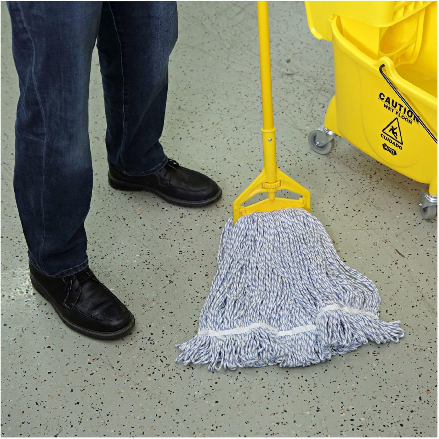 Boardwalk 542CT Mop Head, Floor Finish, Narrow, Rayon/Polyester, Medium, White/Blue (Case of 12)