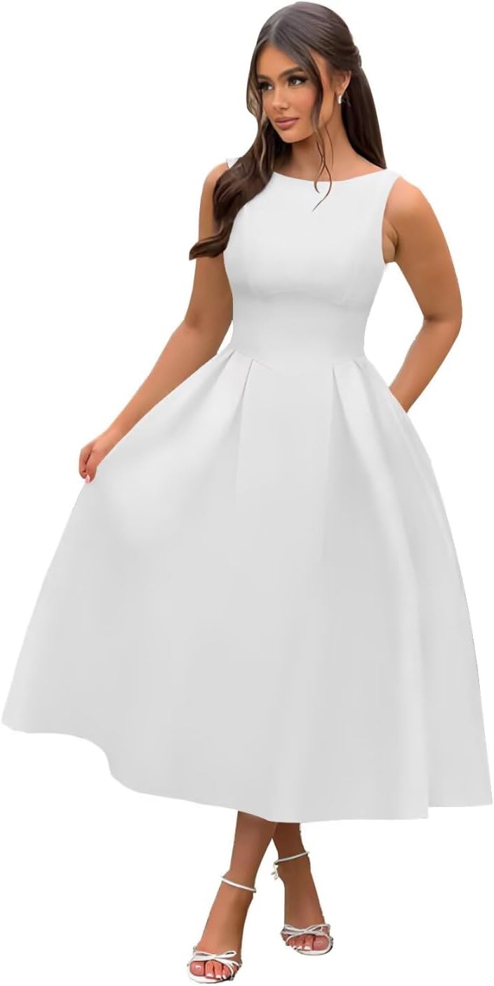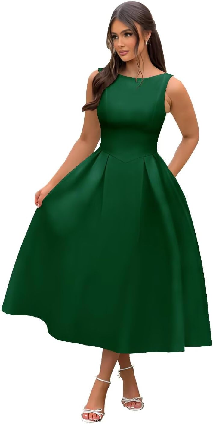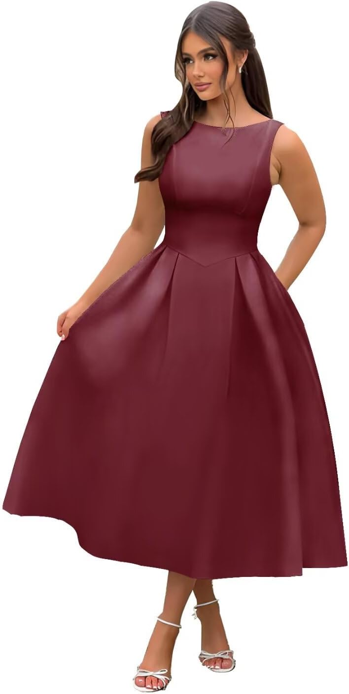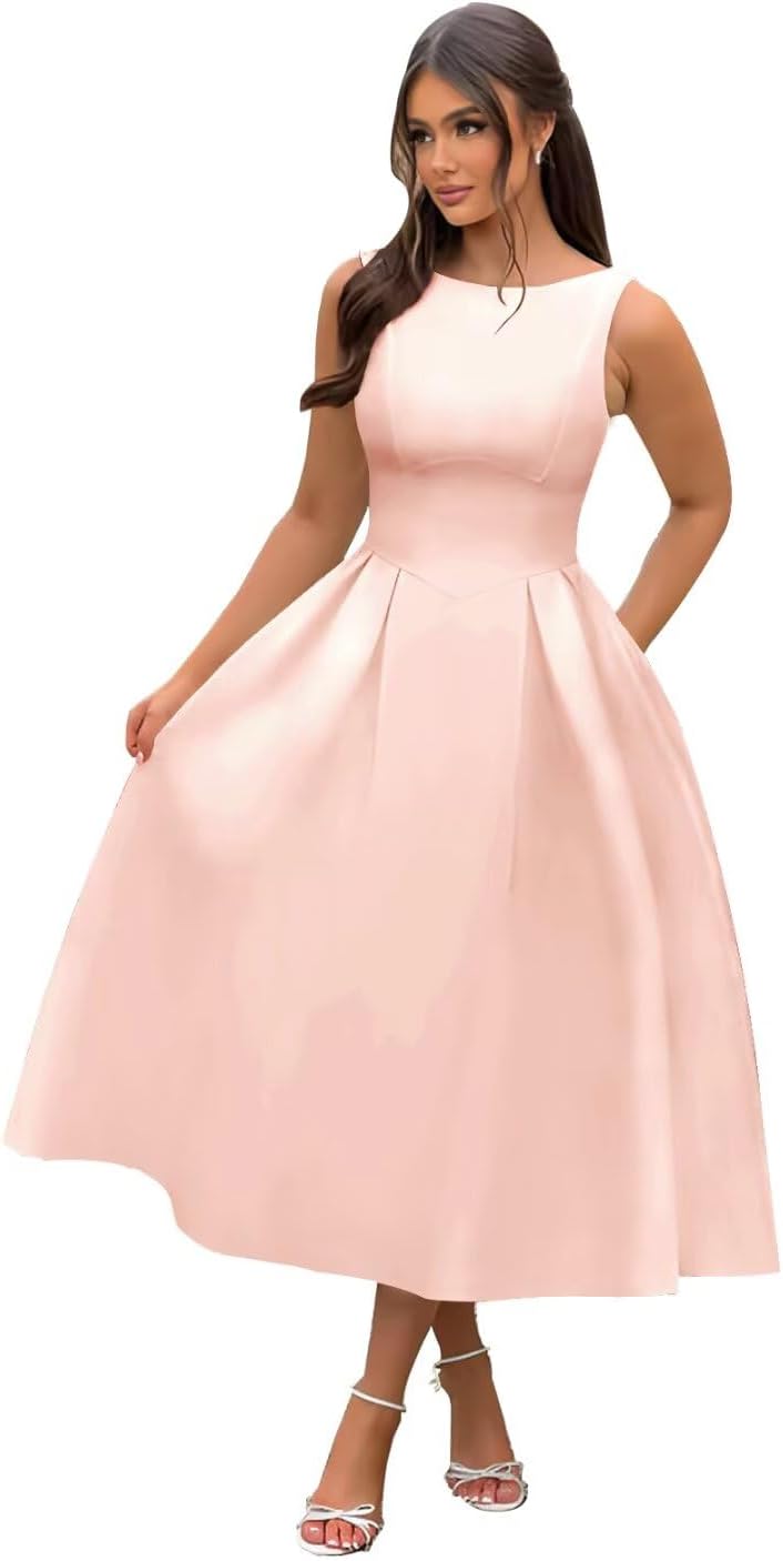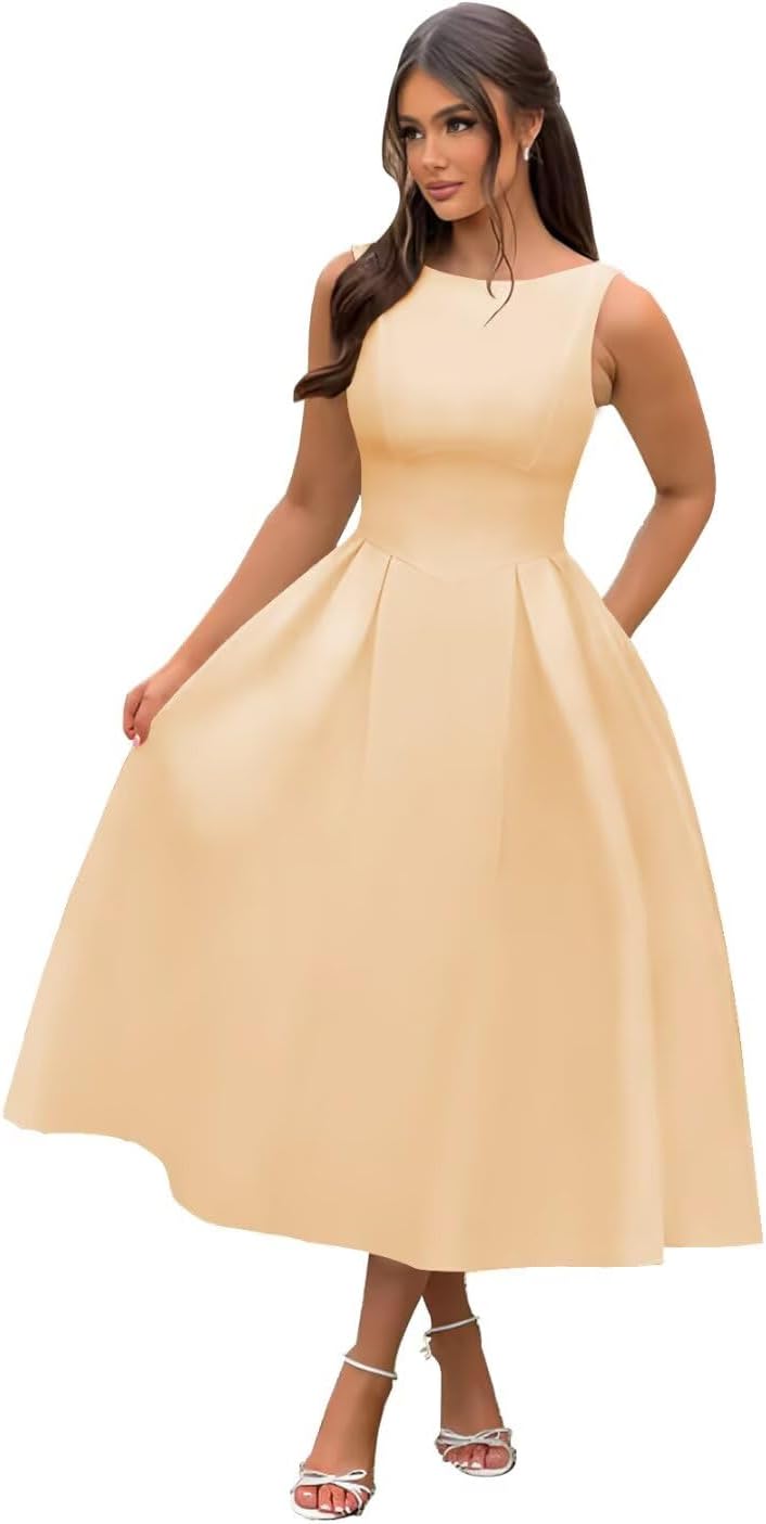 Welcome! We dedicated to provide you all kinds of prom gowns, homecoming dresses, bridesmaid dresses, wedding gowns, cocktail gowns, evening party gowns and etc. There are many colors and style for you to choose. Our dresses will make you look elegant and fashionable in a variety of formal and informal occasions. Hope you enjoy your shopping~ Thinyfull Boat Neck Satin Midi Prom Dresses Tea Length Scoop Back A Line Formal Evening Party Gowns Suitable for homecoming,senior prom,wedding,graduation,birthday,evening party,holiday, dance, anniversary, engagement or any other occasions, this elegant party dress will be your lovely partner~ Features of dresses: Neckline: Boat Neck Fabric: Satin Sleeve: Sleeveless Length: Tea Length Back Style: Corset Customized Size: Please select "One Size" in the size section at the time of purchase. 1.Full Bust _____ inch or ___ cm 2.Waist _____ inch or ___ cm 3.Hips _____ inch or ___ cm 4.Shoulder to Shoulder ____ inch or ___ cm 5.Hollow to floor(Shoulder to Feet without shoes) ___ inch or ___ cm 6.The height of your high heel shoes: _____inch or ___ cm 7.Arm Circumference: ____inch or cm(if the dress with sleeves) Please allow 1-3 cm differs due to manual measurement Color may have color deviation due to the different screen Display. Please check your measurements to make sure the dresses fits before placing the order Hand wash and steam pressing to remove the wrinkles due to long-distance shipping If you have any other question,please contact us freely, and we are always at your service!