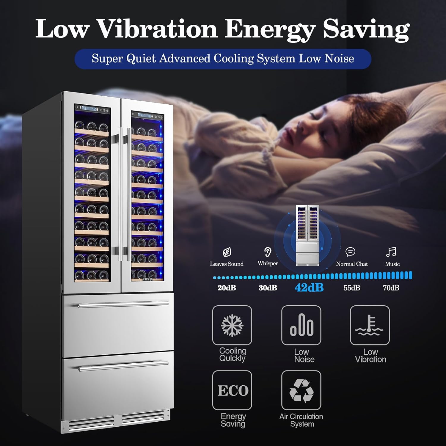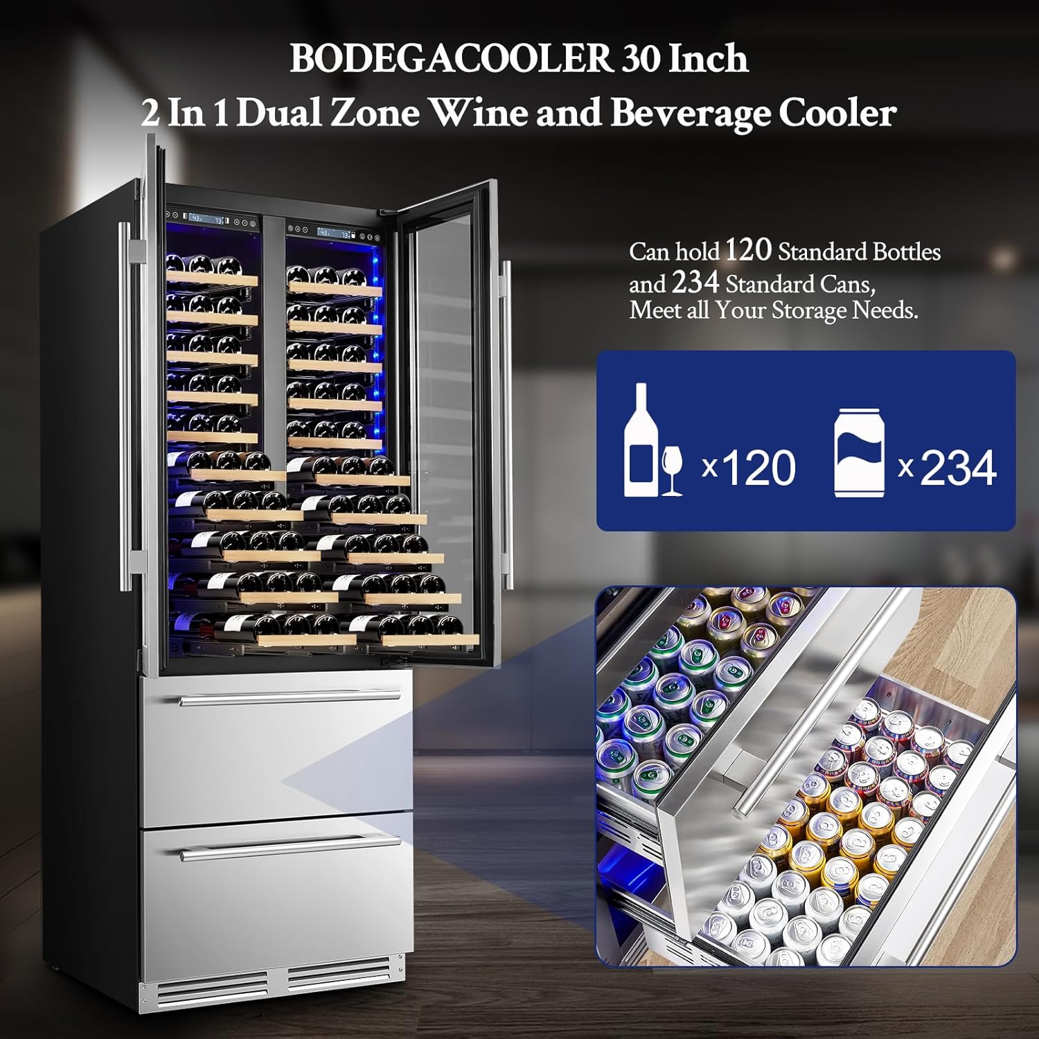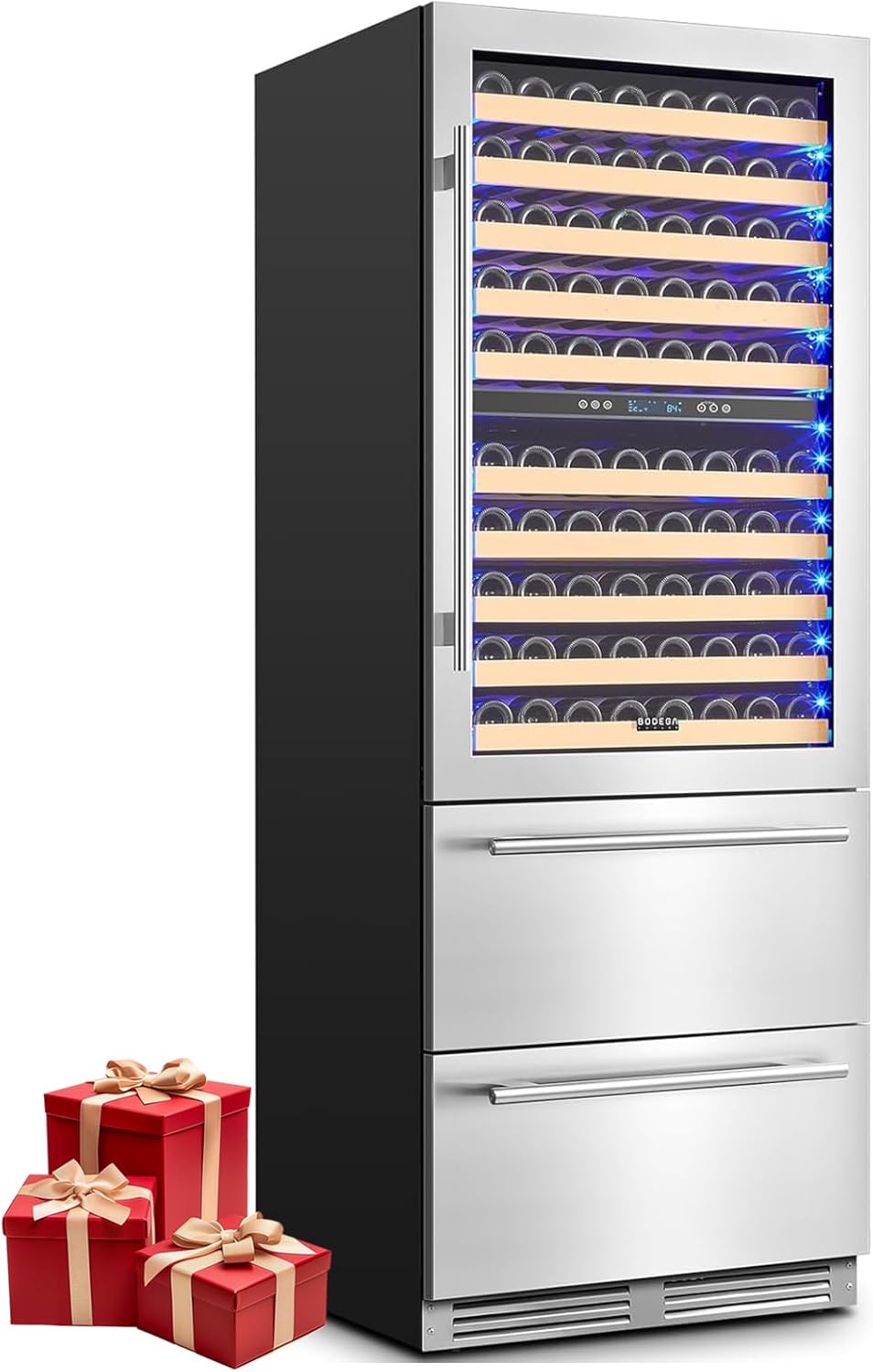 | Configuration | Dual zone wine cooler & two beverage drawers,Glass stainless steel wine cooler door,Handle*4,Manual |